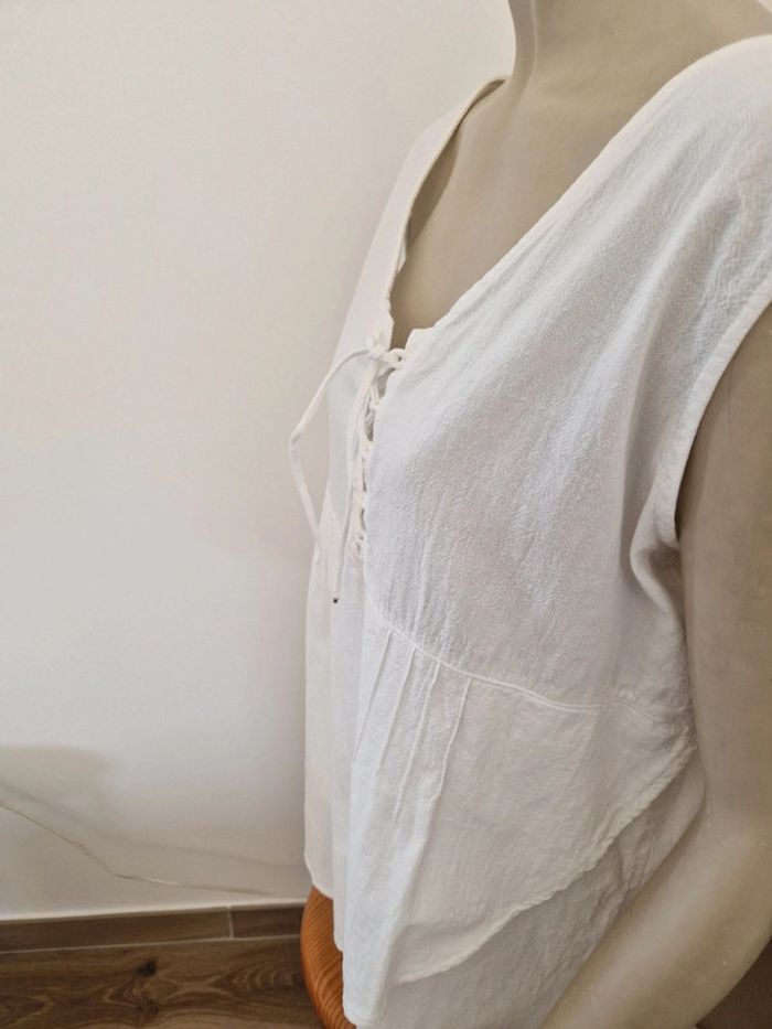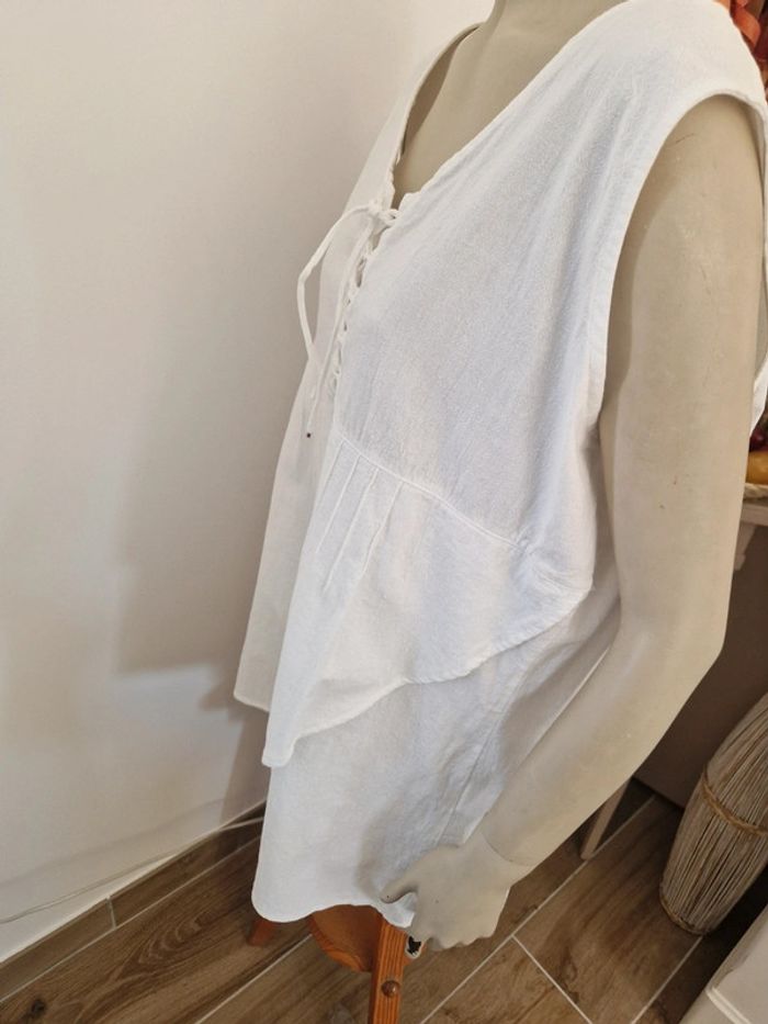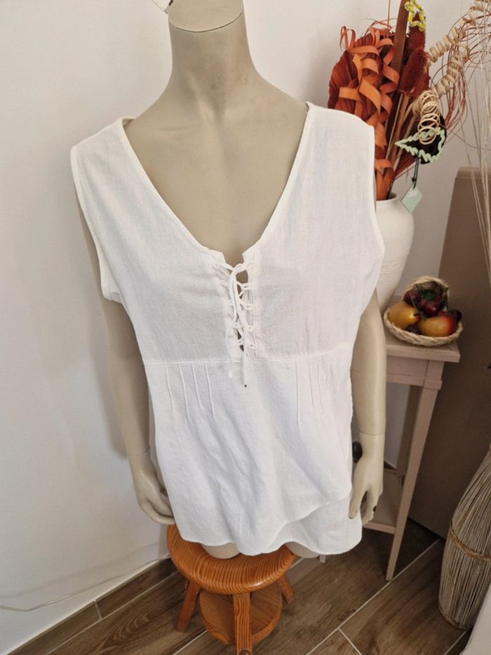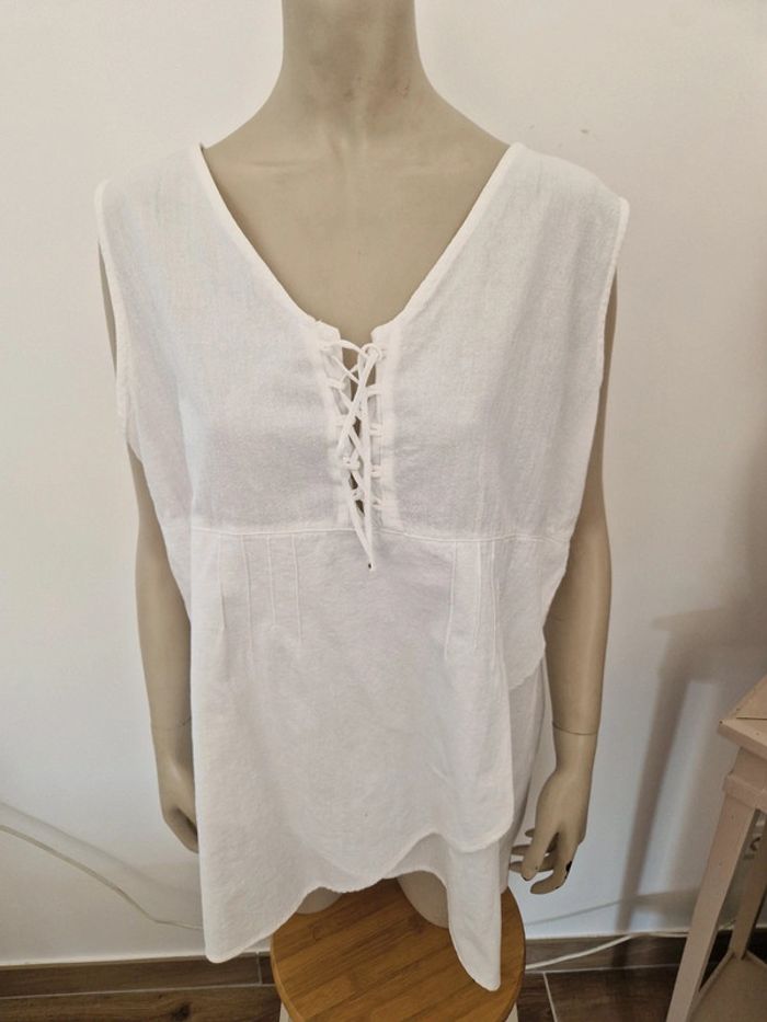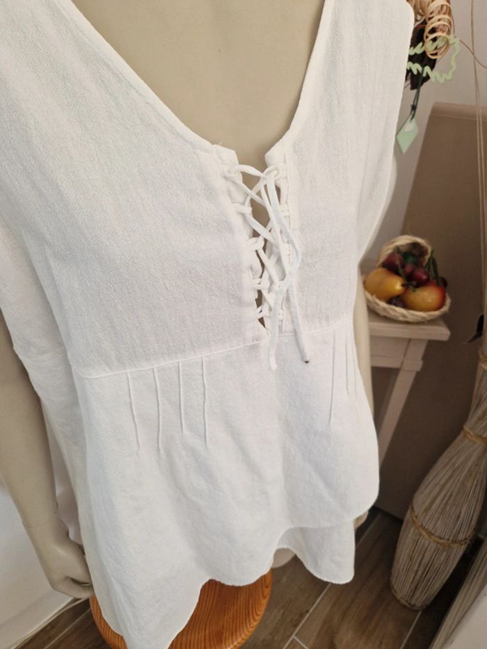 Superbe tunique sand manches. Rabat sur le côté. Décolleté en V avec un lien. Jolie et de belles qualités cet article Blanc du Nil🌊 Taille 6 qui correspond à un xxxl un 46 #ellaben_blousesfemmes #ellaben_grandestailles #ellaben_blanc