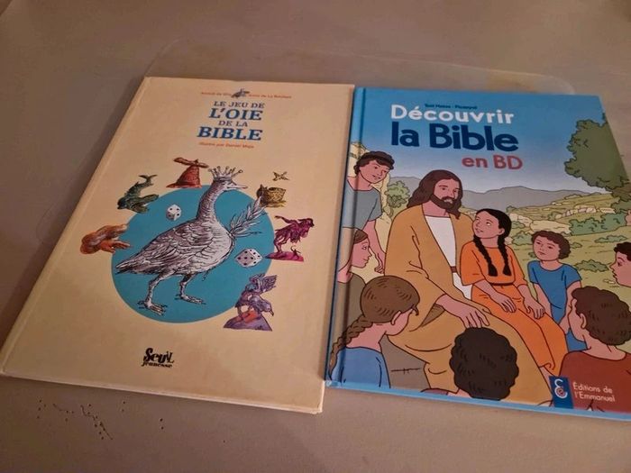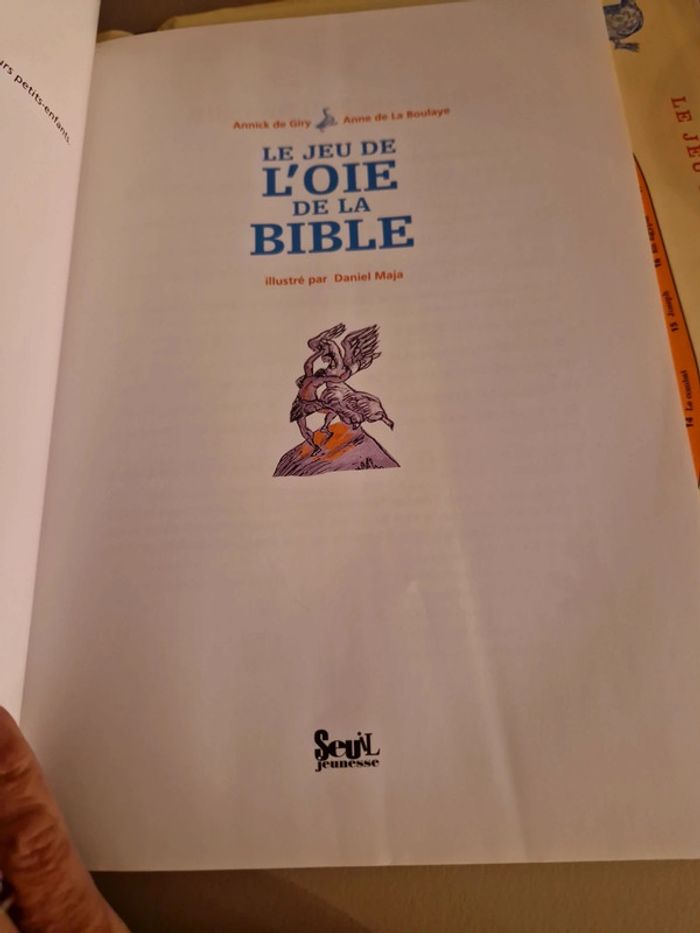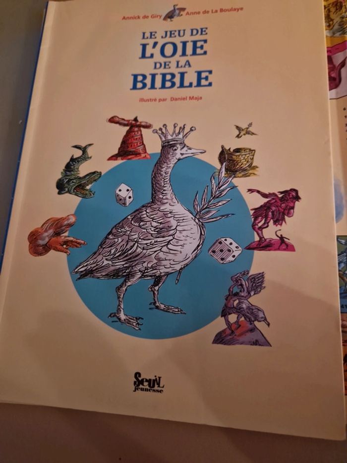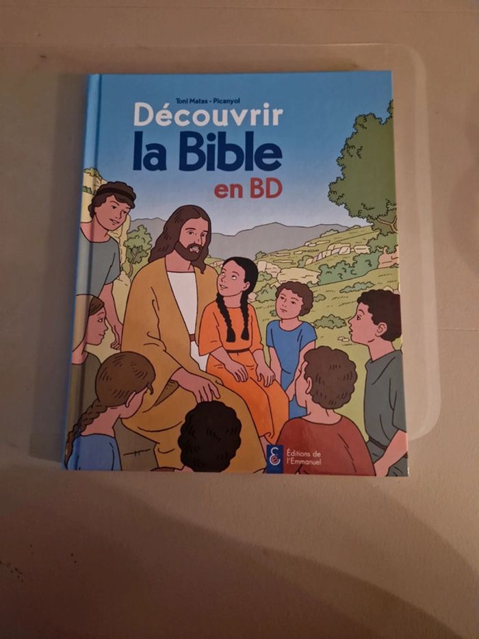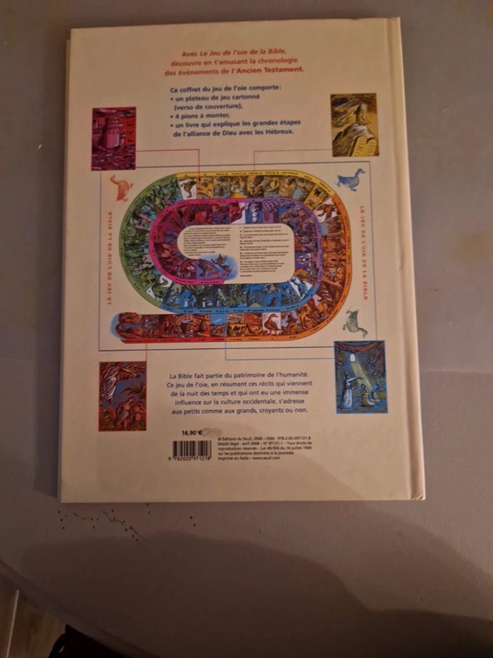 Lot d'un jeu et d'un livre. L’essentiel de la Bible en bande dessinée, servi par de magnifiques dessins et par la traduction liturgique officielle. Redécouvrez la Genèse, l’épopée du peuple de Dieu et la vie de Jésus. Un livre précieux qui permet d’entrer dans le monde de la Bible par le texte et par l’image. Un livre didactique et un jeu d’initiation pour connaître les figures emblématiques de l’Ancien Testament dans leur apparition chronologique. LOT INDISSOCIABLE . #ellaben_livres #ellaben_jeux