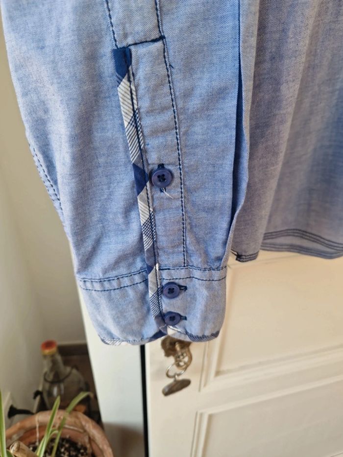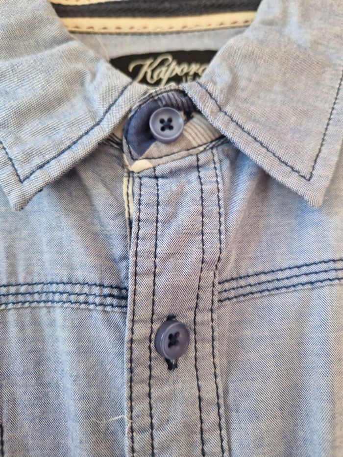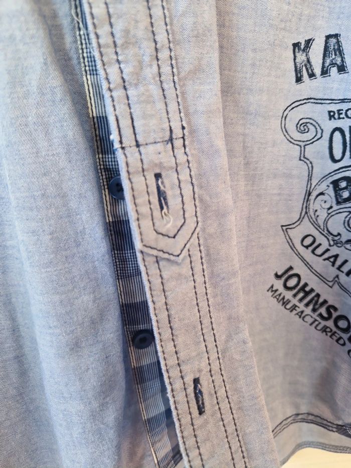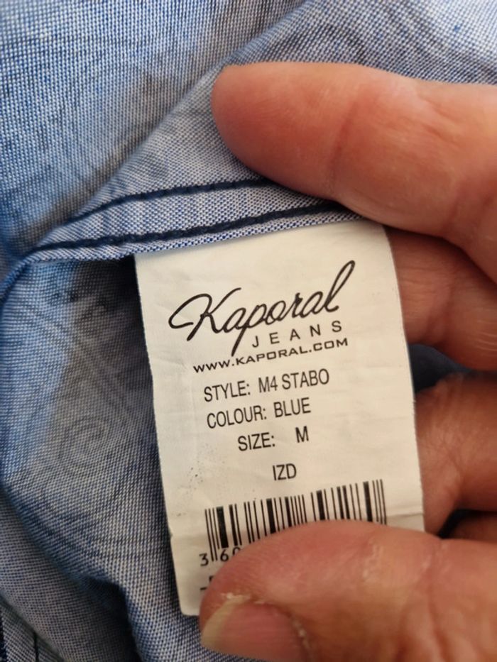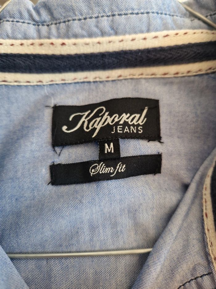 Jolie chemise pour homme de marque Kaporal. Tissus 100%coton de couleur bleue. Manches longues avec boutonnières motifs à carreaux Logo de la marque sur le bas du vêtement Deux poches boutonnées sur la poitrine. Deux boutons de rechange cousu sur l'étiquette. Très jolie et agréable à mettre. #ellaben_chemisehomme