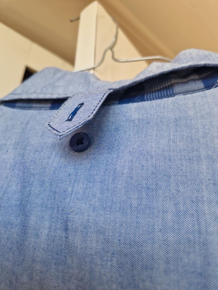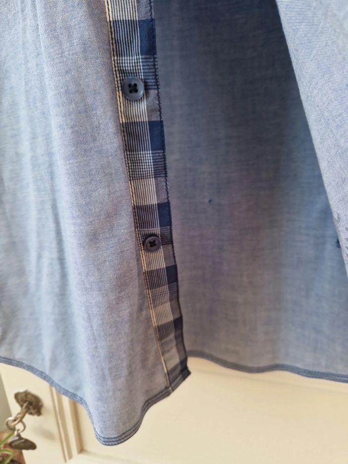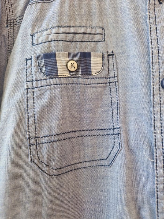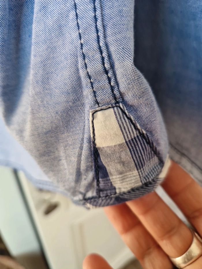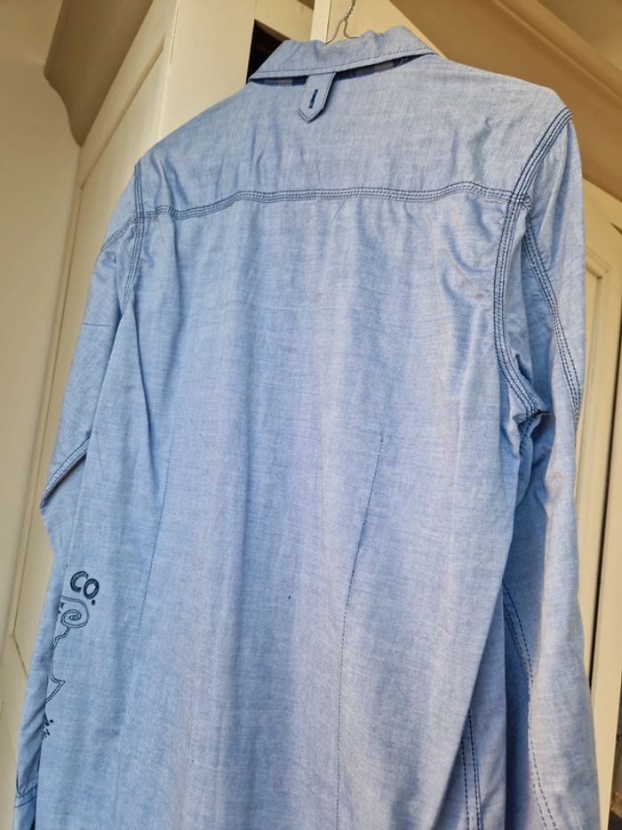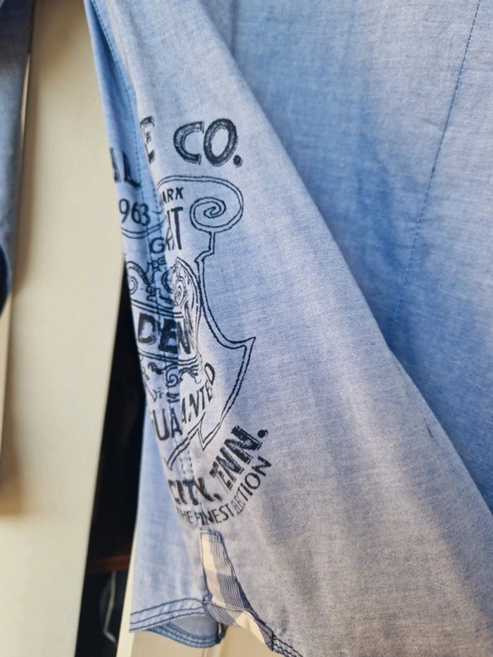 Jolie chemise pour homme de marque Kaporal. Tissus 100%coton de couleur bleue. Manches longues avec boutonnières motifs à carreaux Logo de la marque sur le bas du vêtement Deux poches boutonnées sur la poitrine. Deux boutons de rechange cousu sur l'étiquette. Très jolie et agréable à mettre. #ellaben_chemisehomme