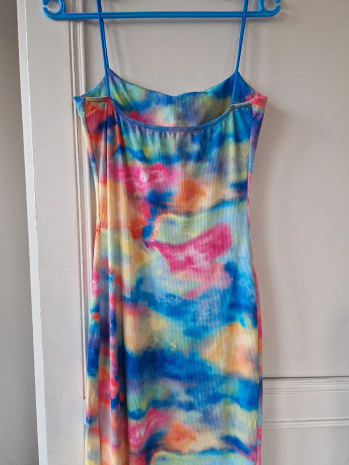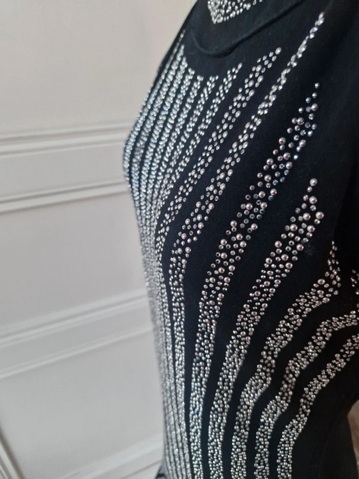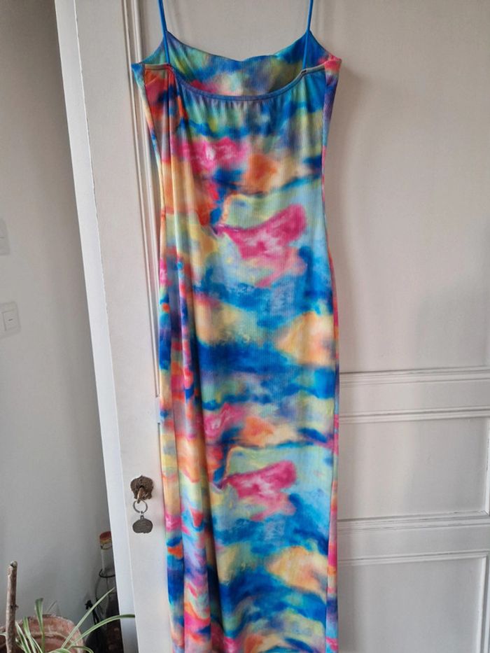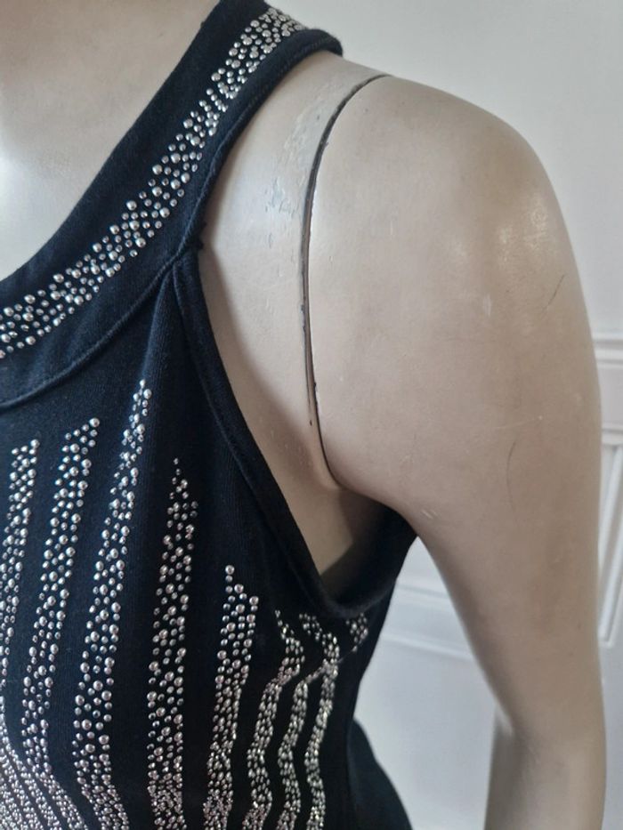 Deux articles dans ce lot. Deux robes 👗. Une robe noire🖤 avec des décorations couleur argenté. Robe sans manches avec un dos décolleté. Une robe 👗 longue bustier avec un rembourrage au niveau de la poitrine. Robe multicolores. Deux modèles différents. Taille M/L Lot 💜 indissociable. #ellaben_robes