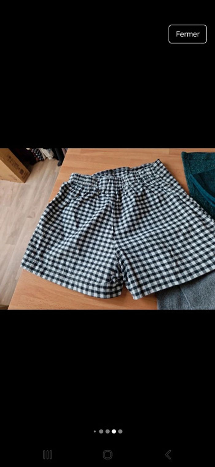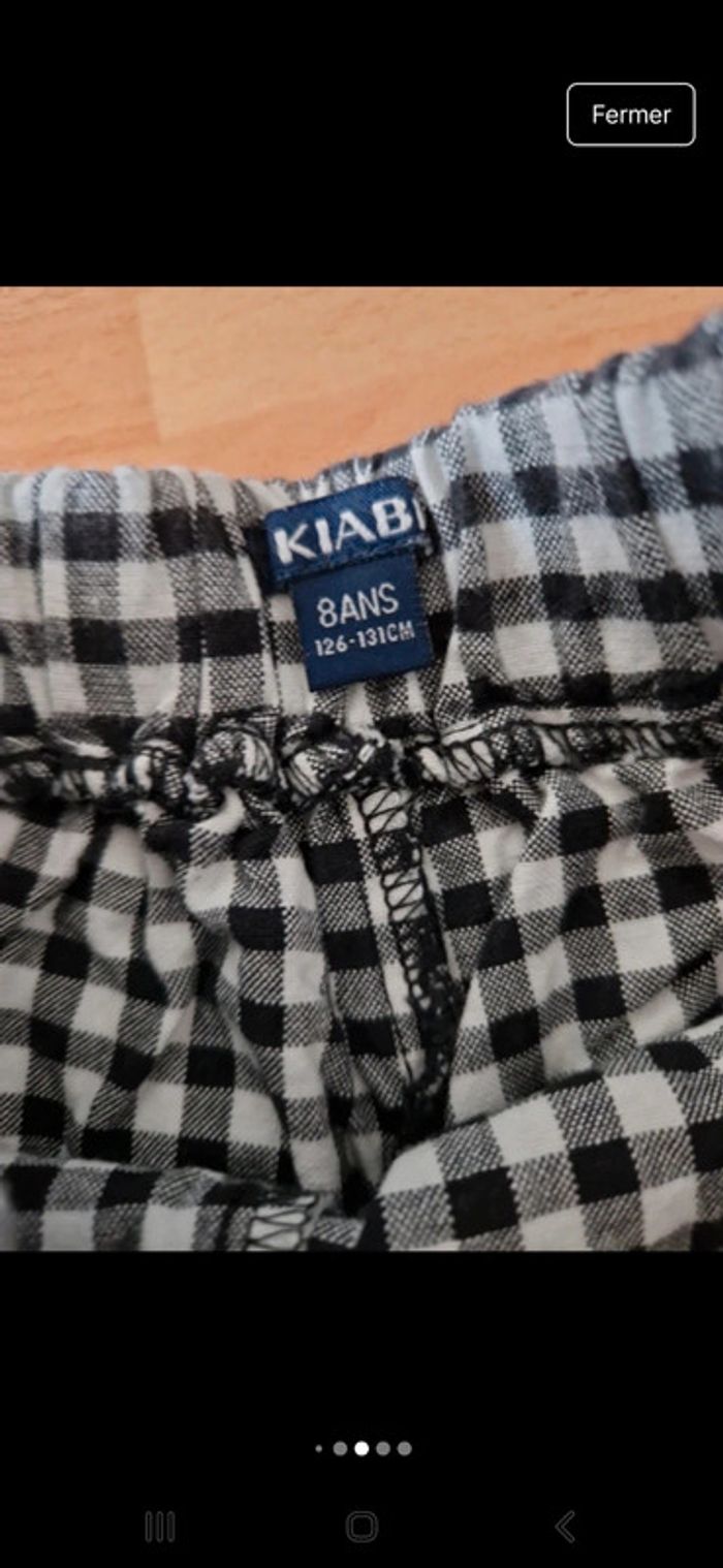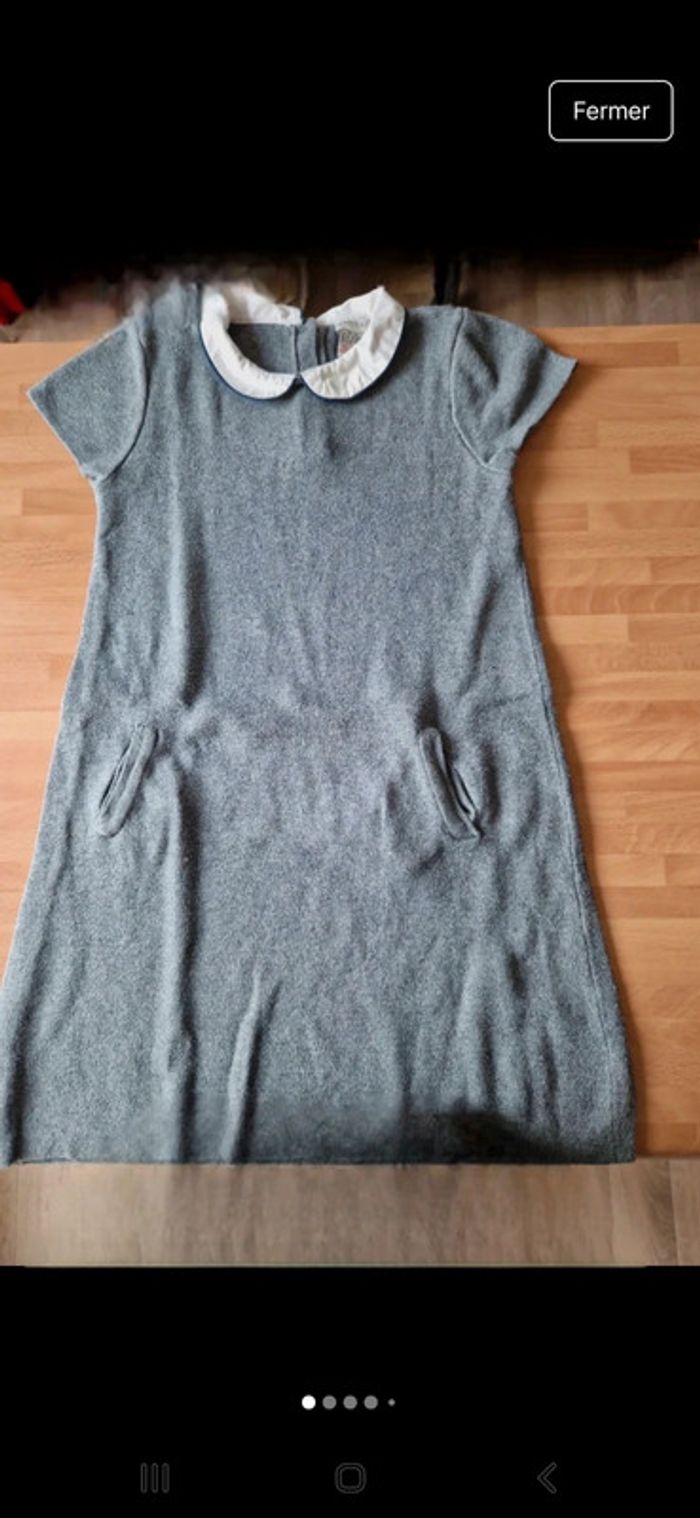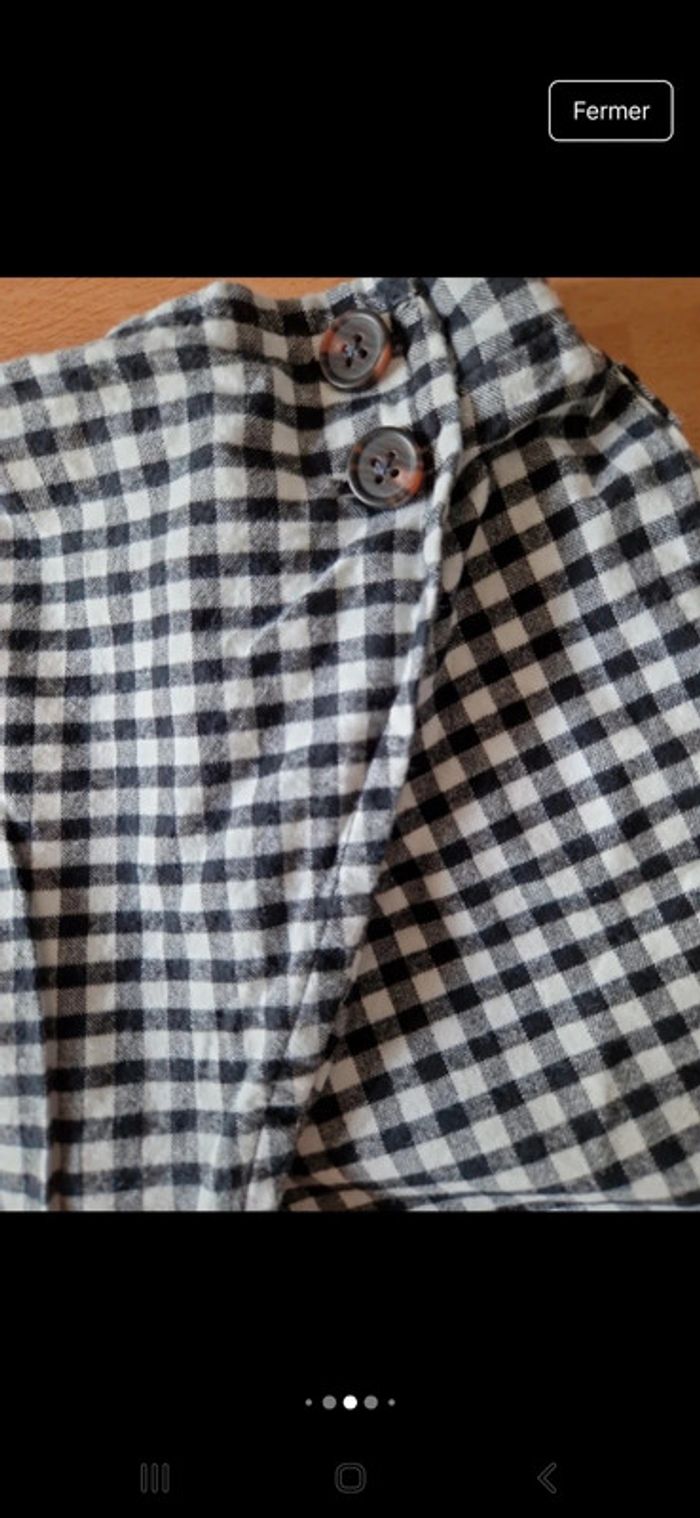 Jolie robe manches longues entièrement doublée Petite rangée de boutons métalliques entourés d'un carré de smokes. Encolure ronde avec une dentelle à pompons bleu. Volant sur le bas Manches avec un bouton et une patte pour pouvoir les relever. Petit carré de smokes également dans le dos. Jolie robe avec ces couleurs et motifs à fleurs. Robe 100 % coton Une jolie robe droite manches courtes dans ce lot plus un short jupe. Une robe grise avec un col Claudine et deux poches à la taille. Fermeture par une rangée de boutons. Taille 8 ans marque Cyrillus Jupe short Kiabi avec deux boutons à la taille, Motifs à carreaux noir et blanc. 100 % coton Lot INDISSOCIABLE #ellaben_enfants