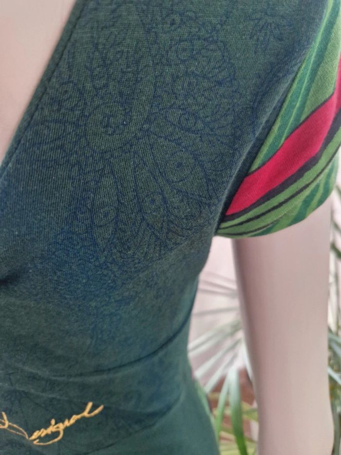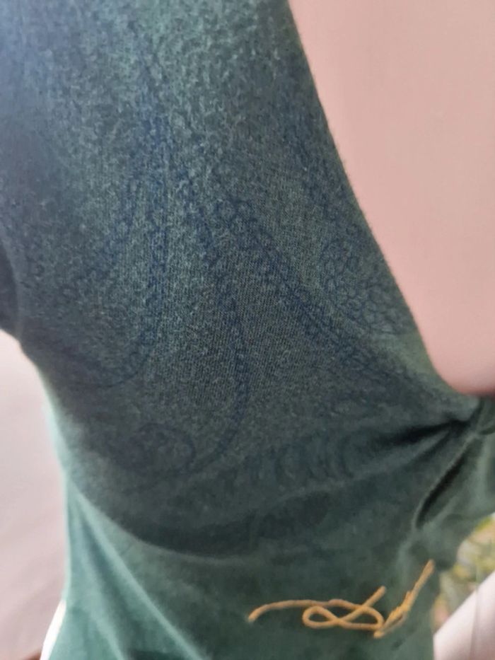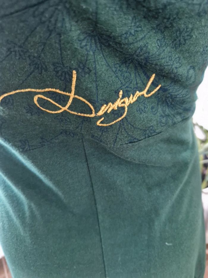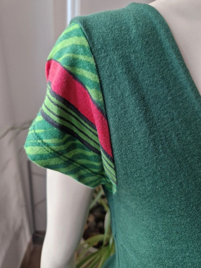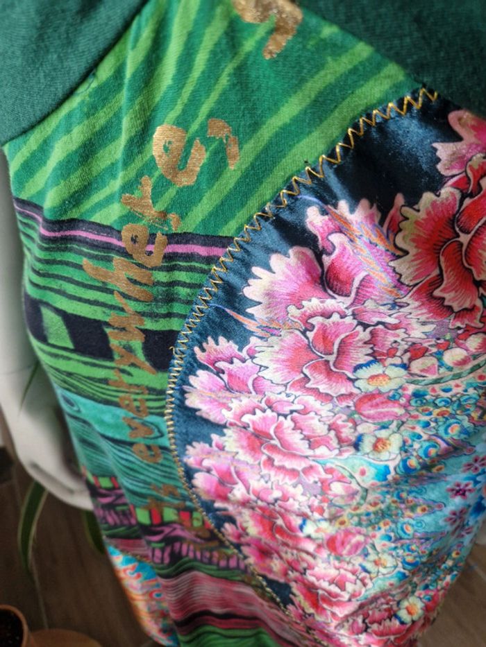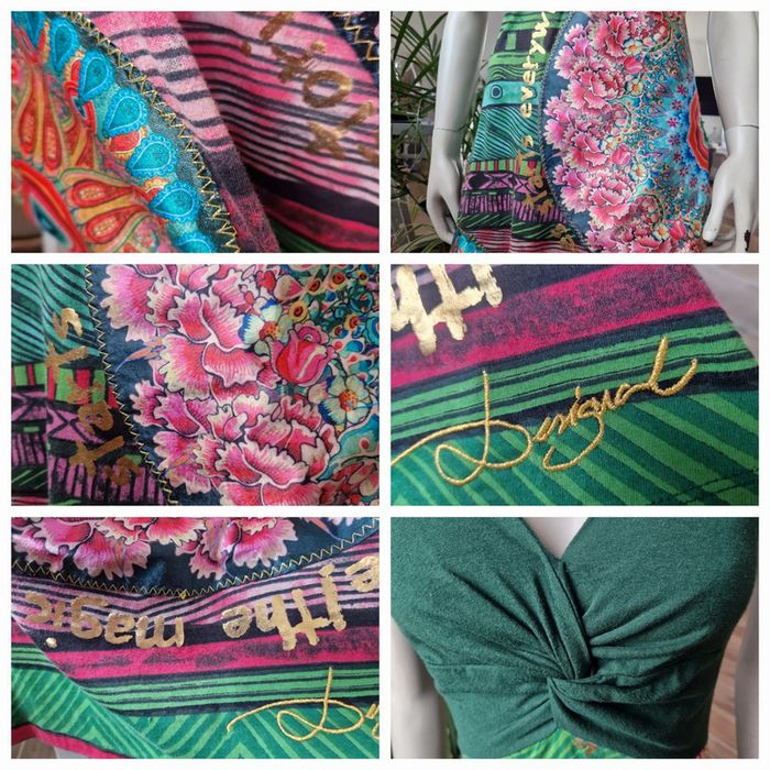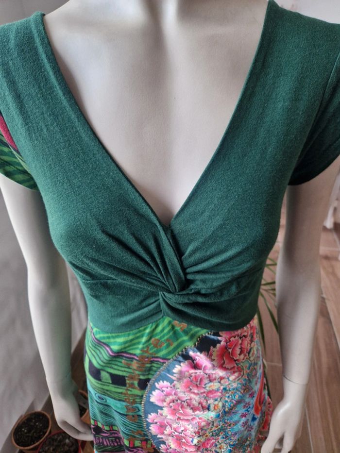 Jolie robe colorée avec deux décolleté en V. Celui de devant est fait à partir d'un noeud celui de derrière laisse entrevoir le dos. Superbe motifs de couleurs avec des lettres dorés et des perles. Manches courtes. Dos de la robe avec des motifs ton sur ton vers le haut. #ellaben_robes