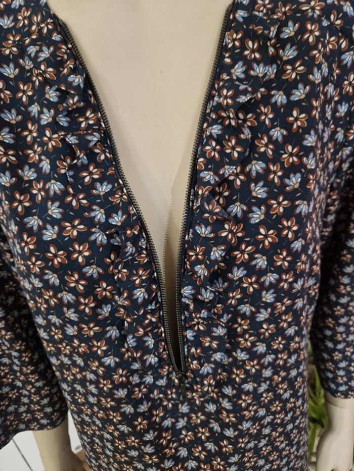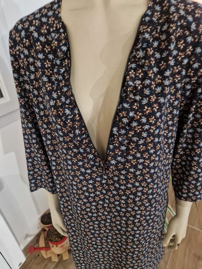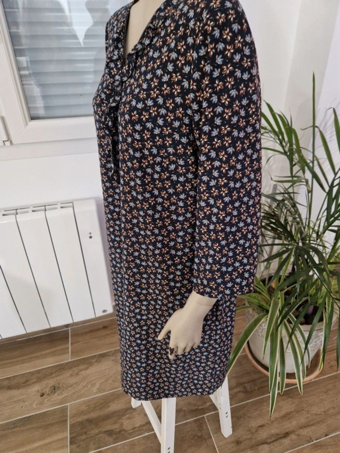 Jolie robe droite Gérard Darel. Décolleté en V bordé de volants qui entoure la fermeture éclair. Manches trois quarts. Une petite fente de chaque côté du bas de la robe Très fluide et belle cette robe Darel. Deux poches latérales. #ellaben_robes #ellaben_geradarel #ellaben_grandestailles