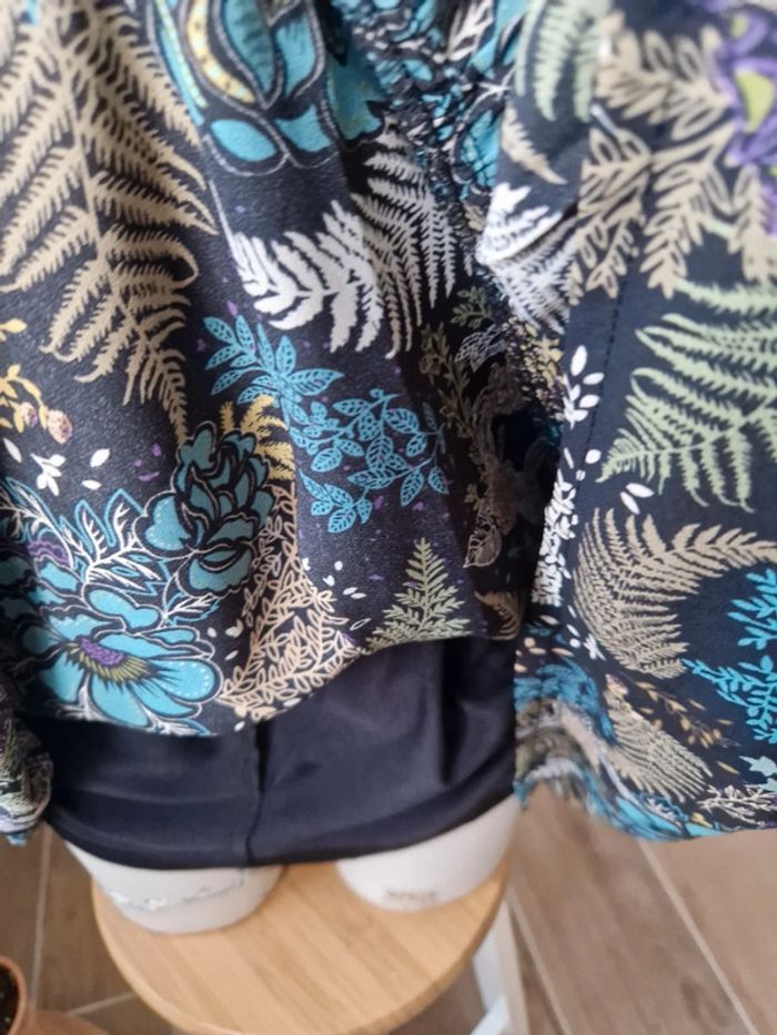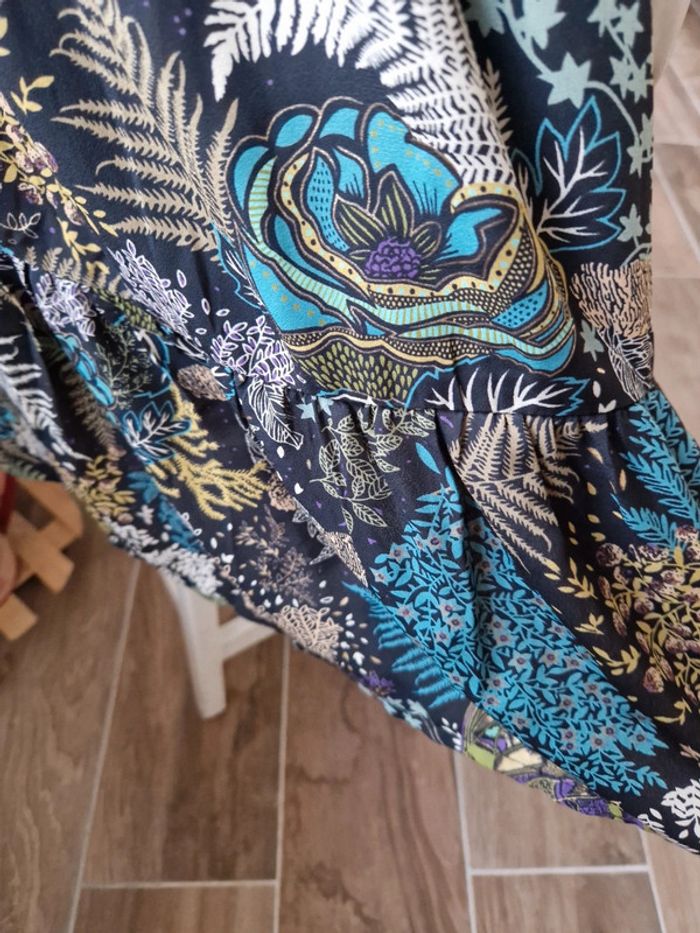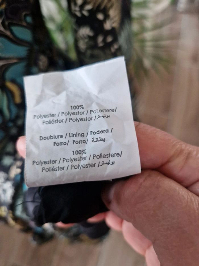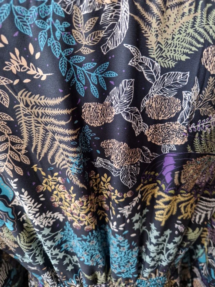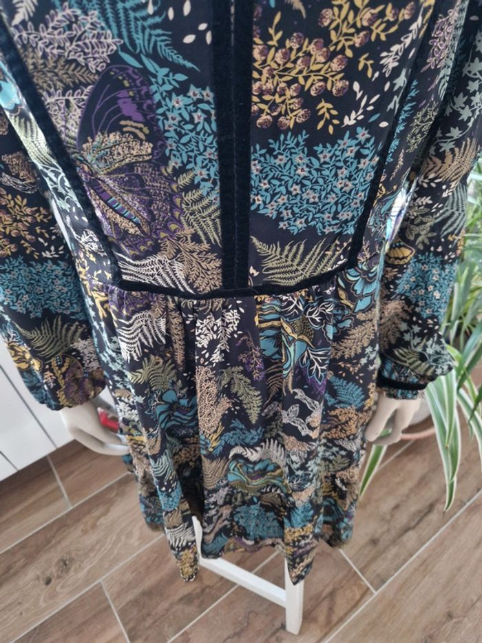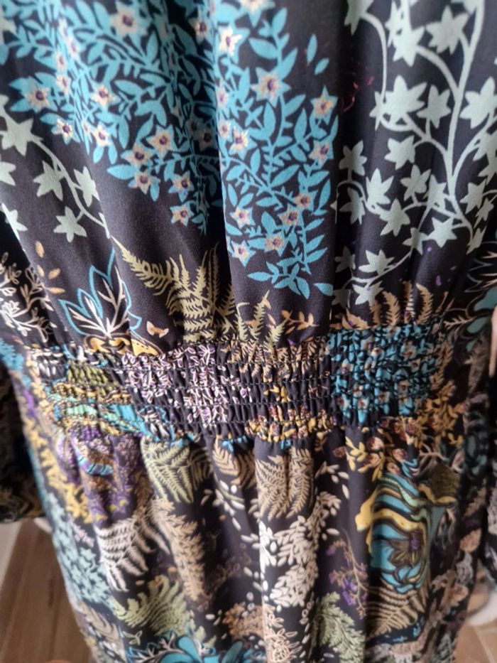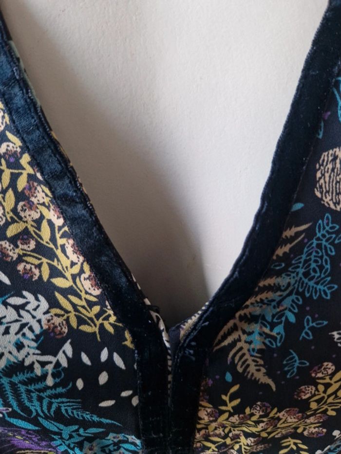 Superbe robe mi longue dans les tons vert et noir. Manches longues resserrées à l'extrémité. Décolleté en V bordé d'un ruban noir ⚫️. Ruban noir que l'ont retrouve à plusieurs endroits sur la robe. Robe très fluide. Robe 👗 entièrement doublée.