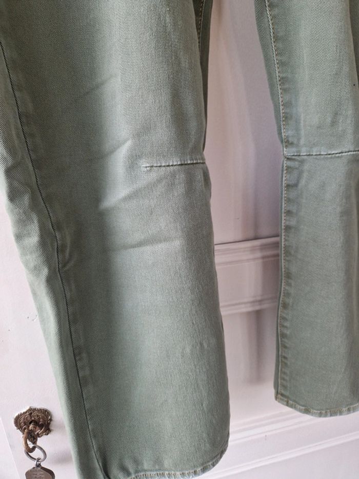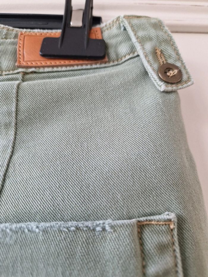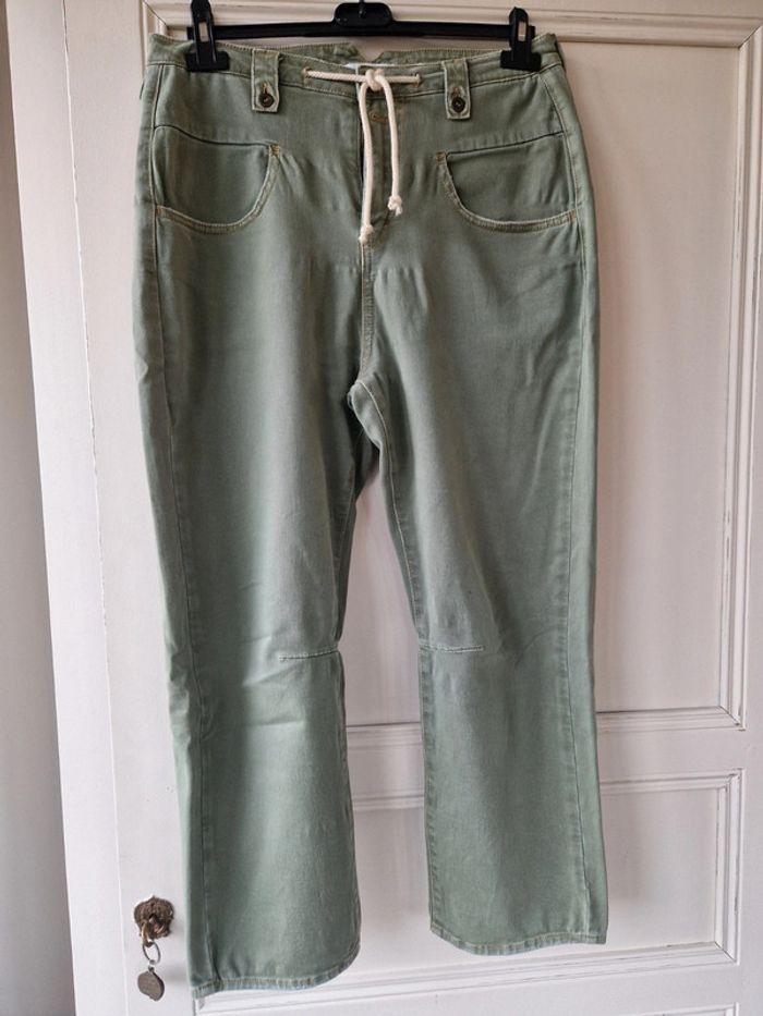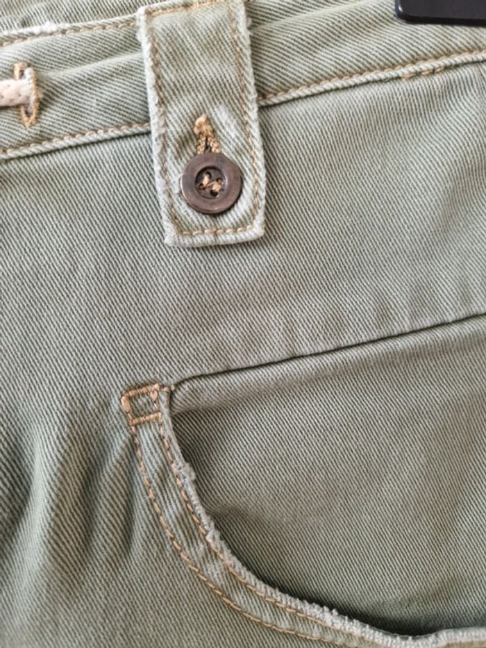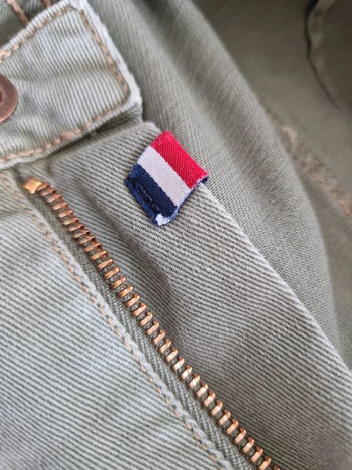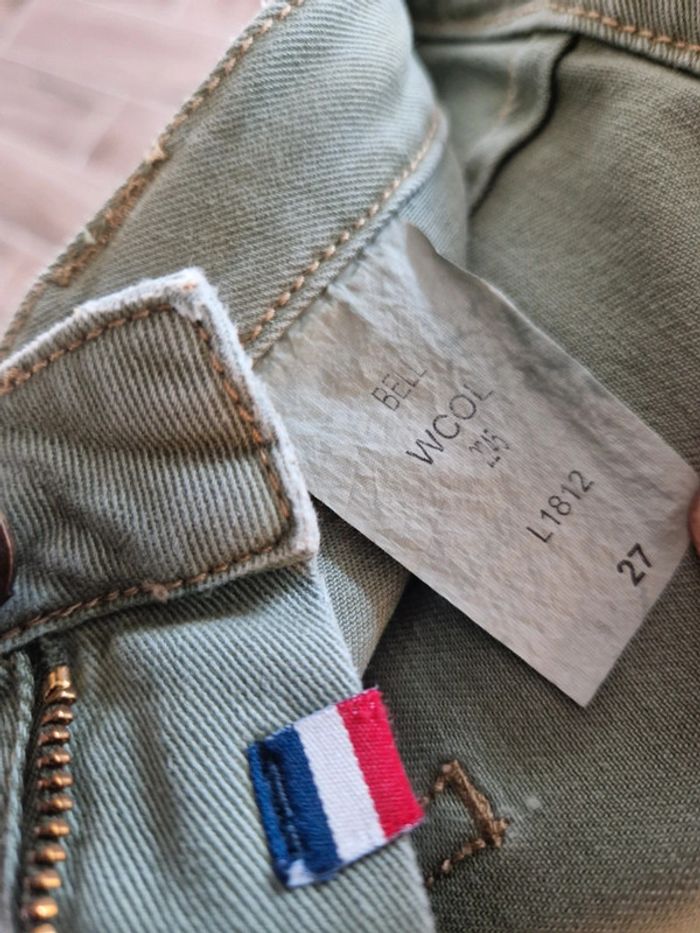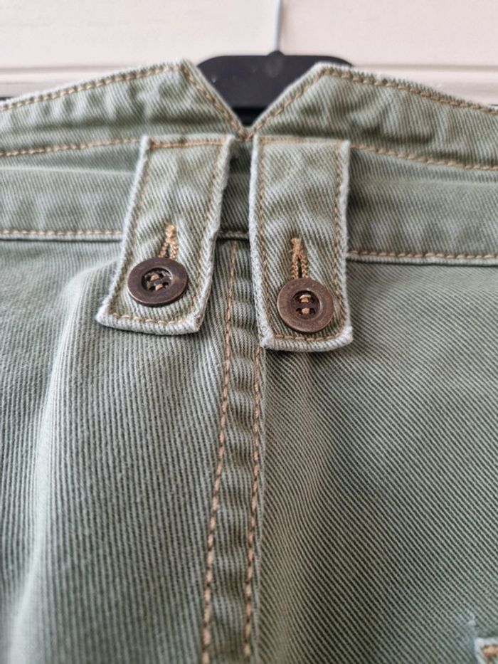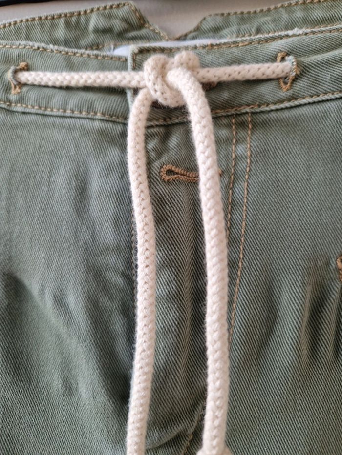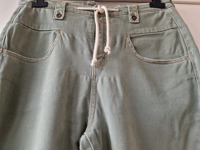 Joli pantalon jambes 🦵 larges de couleurs kaki: Deux grandes poches plaquées devant et deux autres derrière. Fermeture par une ficelle une fermeture éclair et un bouton métallique Au niveau de la taille plusieurs pattes avec des boutons métalliques Taille US 27 Pantalon 100% coton. Modèle décontracté et originale. #ellaben_pantalonfemme #ellaben_jeans