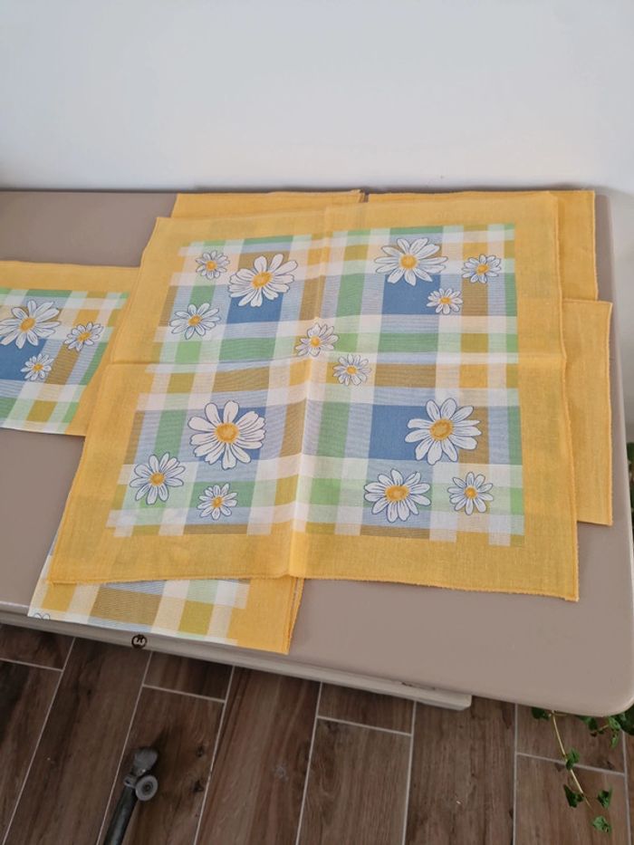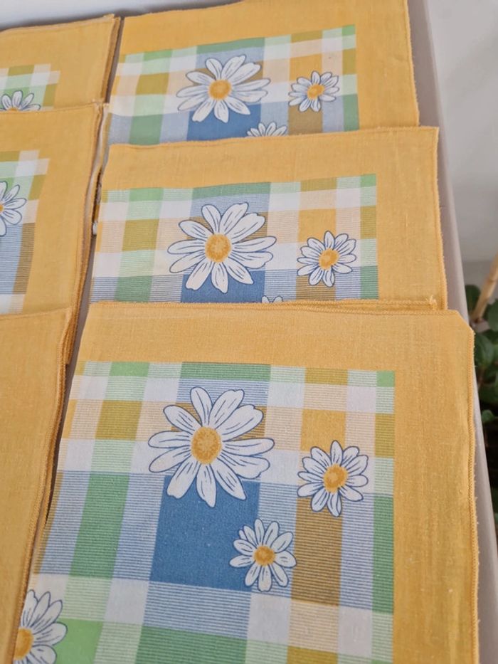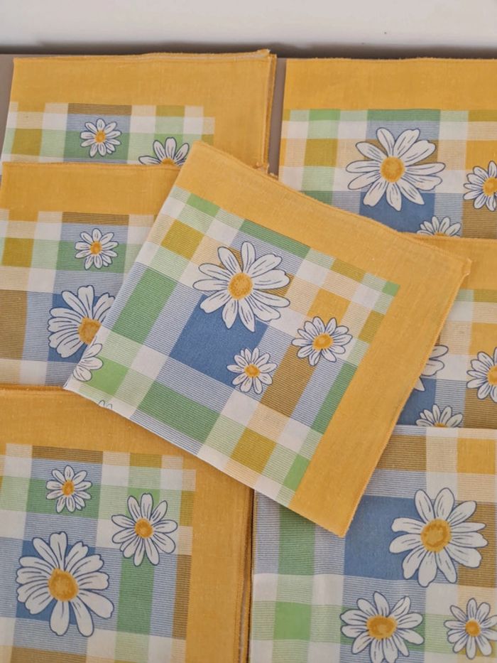 Lot de 7 serviettes de table neuves . Decors floral marguerites. 🌼 Dimensions 41×39 cm Articles 100% coton #ellaben_lingedemaison