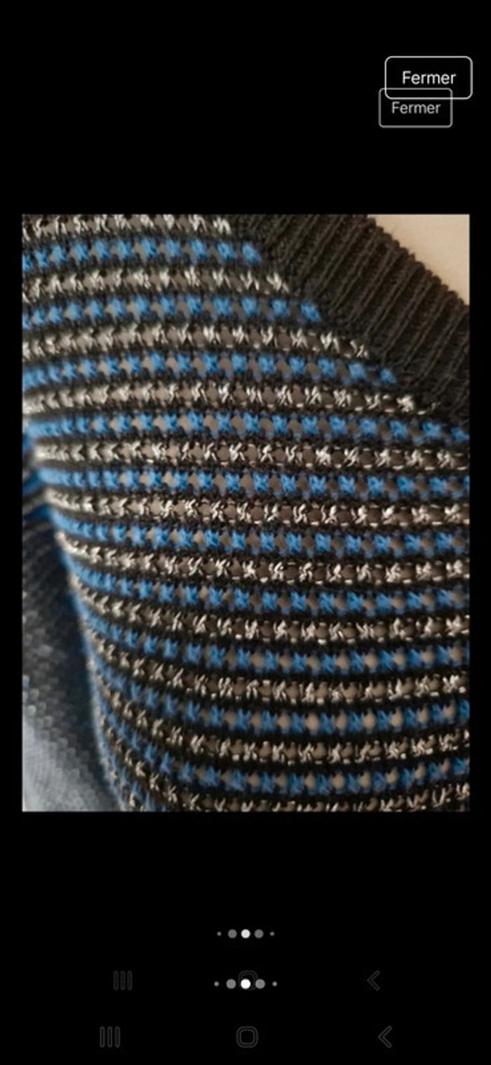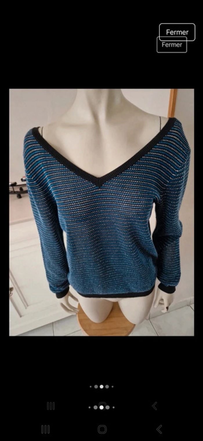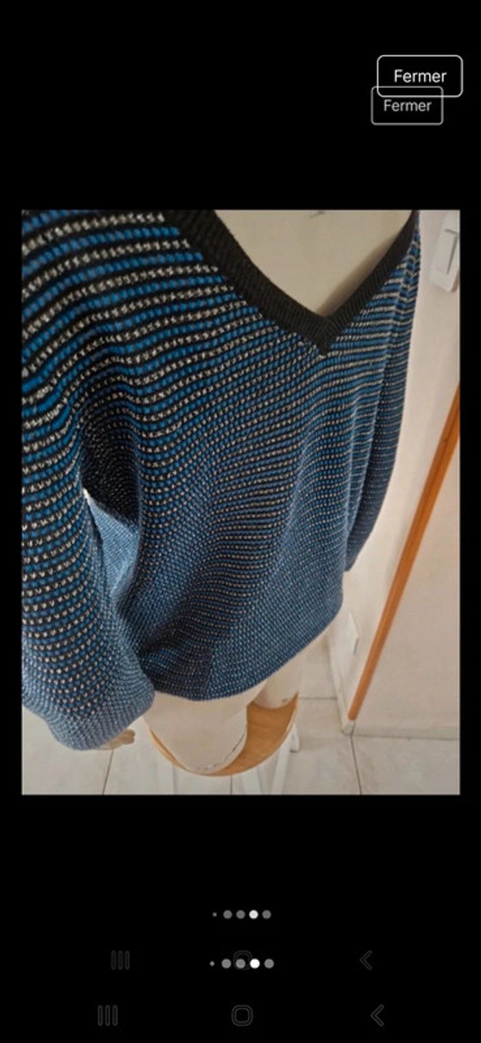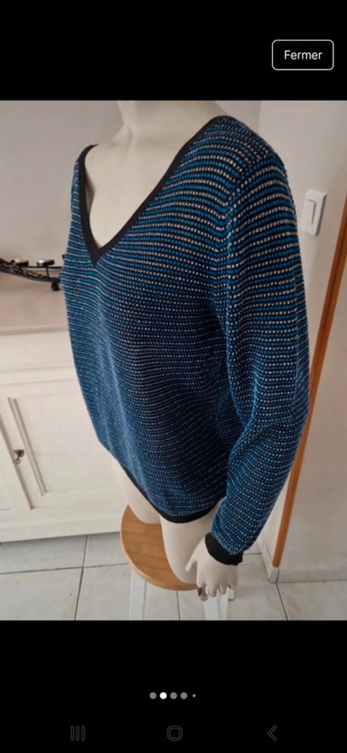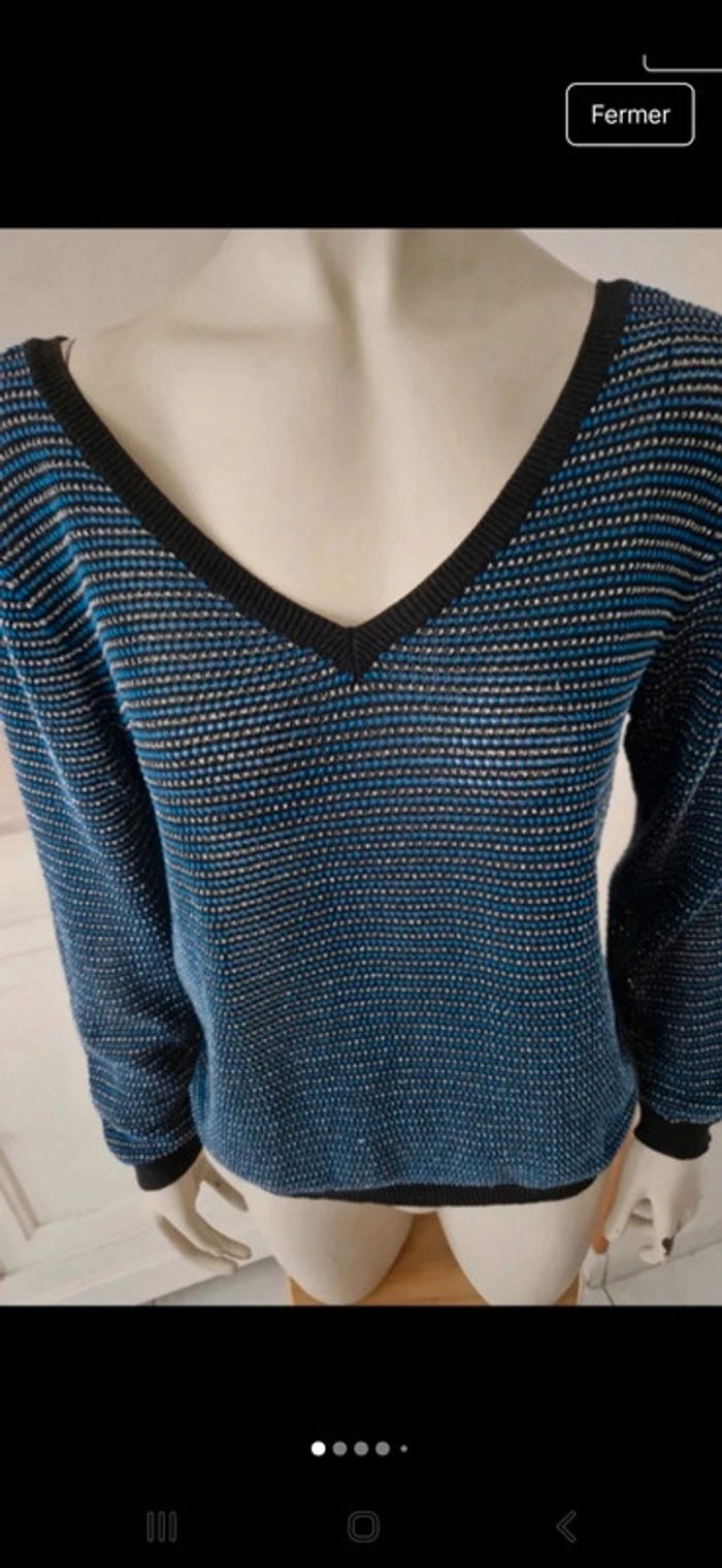 Joli pull avec un décolleté en V devant et derrière Manches longues. Pull léger demie saison. Pull en coton,viscose et fibre métallique couleur argenté🖤💙 Chic et original #ellaben_pullsfemme