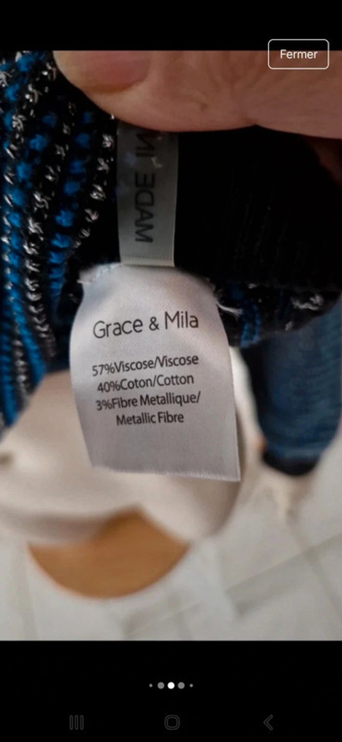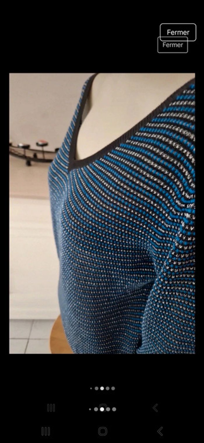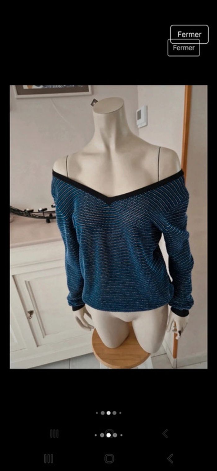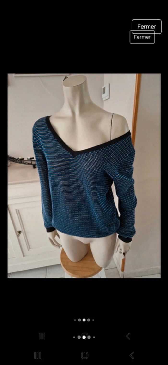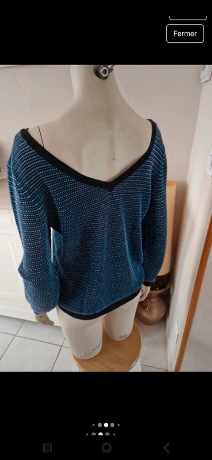 Joli pull avec un décolleté en V devant et derrière Manches longues. Pull léger demie saison. Pull en coton,viscose et fibre métallique couleur argenté🖤💙 Chic et original #ellaben_pullsfemme