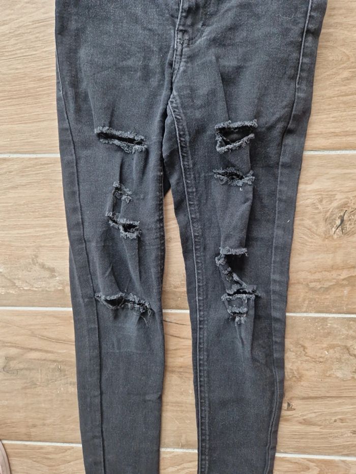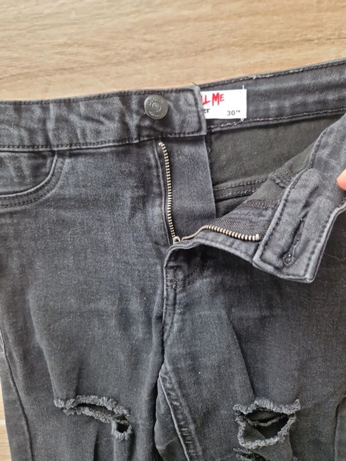 Jegging troués sur les deux jambes devant. Deux fausses poches devant. Deux poches derrière. Fermeture éclair et bouton métallique. Taille US 20 Taille FR 30 Sa correspond à un xxxs #ellaben_enfants #ellaben_jeans
