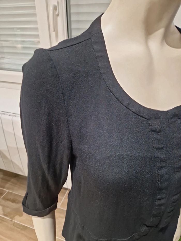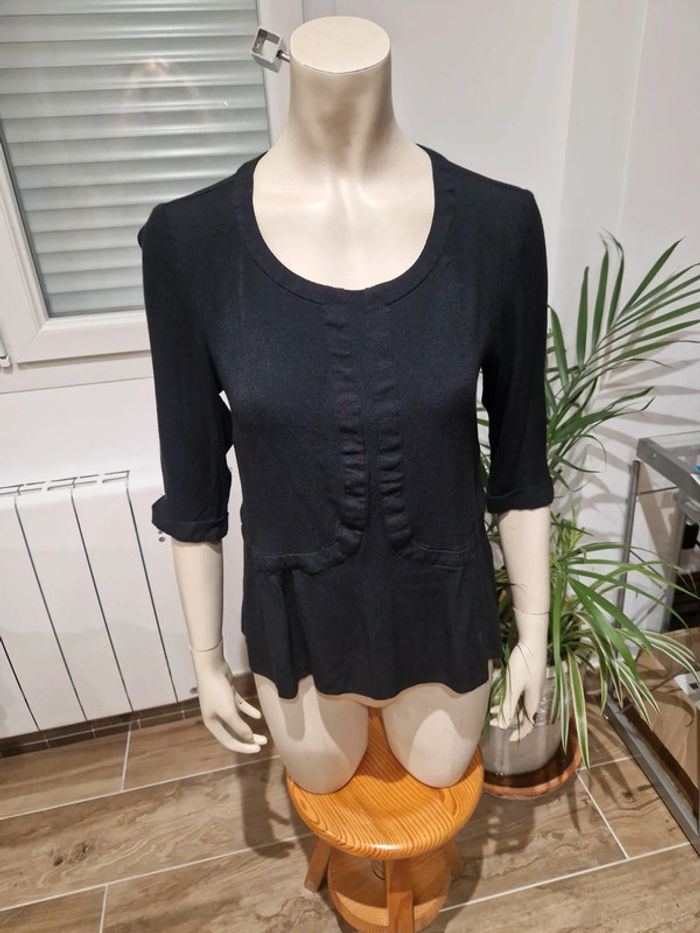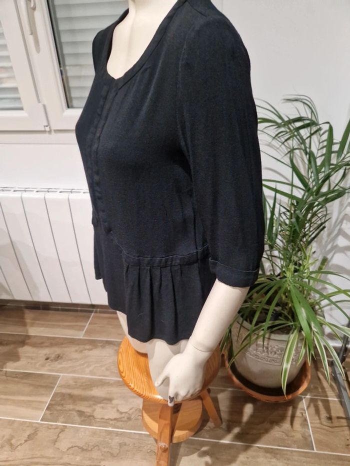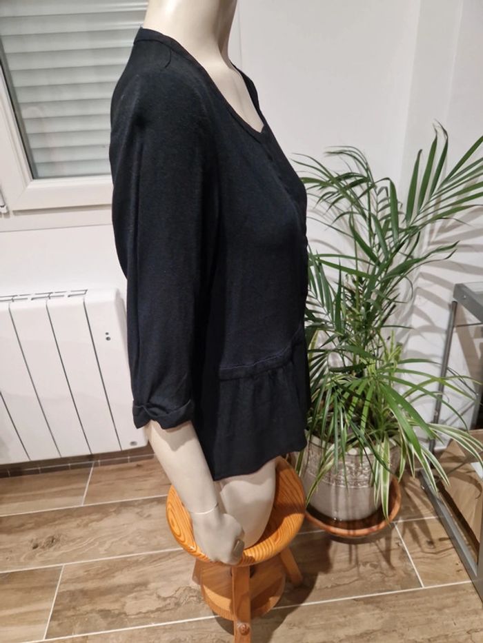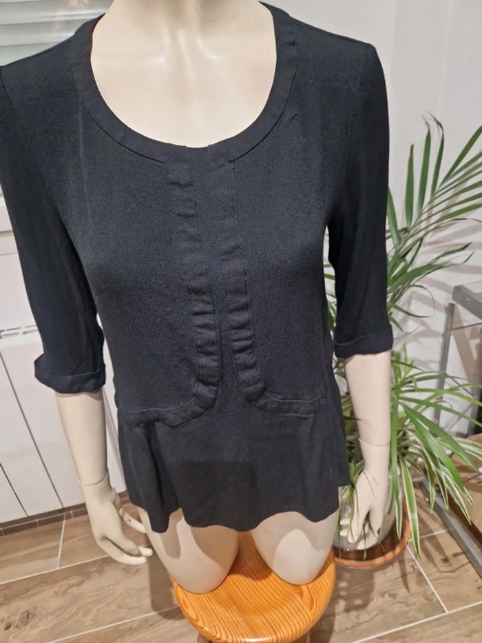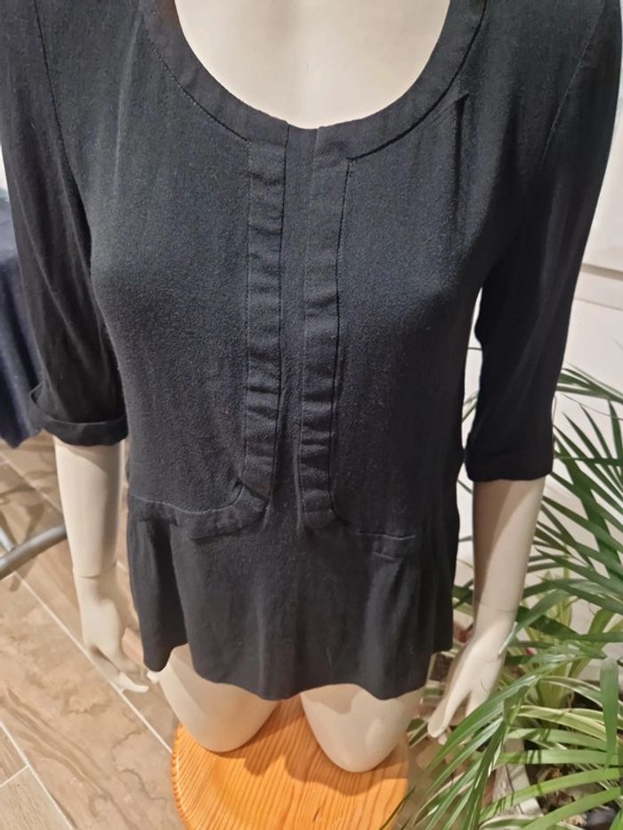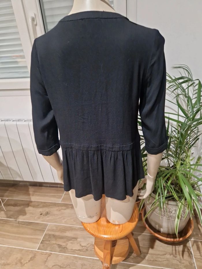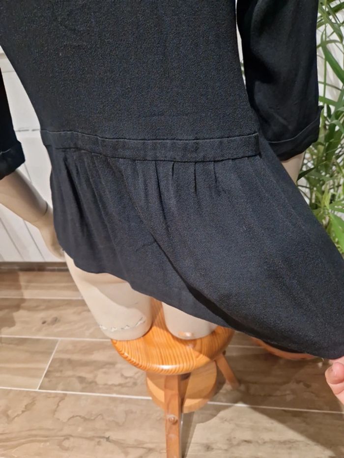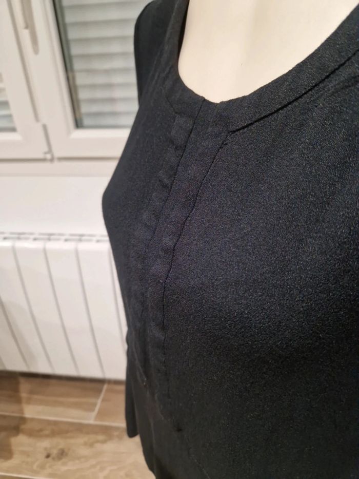 Jolie blouse noir ⚫️ très fluide. Manches trois quarts avec un revers. Décolleté en arrondi. Taille 1 pour cette marque qui correspond à un 38 #ellaben_blousesfemmes