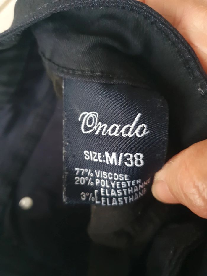 Lot de 2 articles Un pantalon Pull &bear couleur écru avec les jambes larges. Quatres poches plaquées plus une poche tickets de métro. 100% coton. Un pantalon droit noir de la marque Onacado Pareil poches plaquées. Composition viscose et élasthanne. Fermeture identique sur les deux Pantalons zip et bouton métallique au nom de la marque. Lot indissociable #ellaben_pantalonfemme