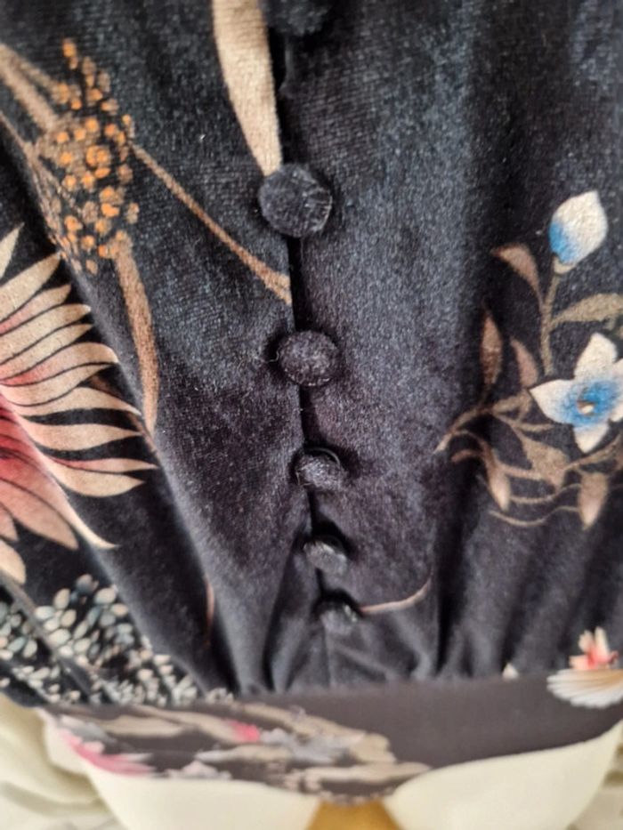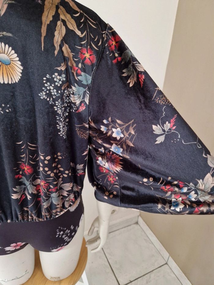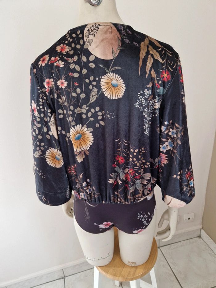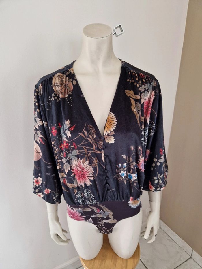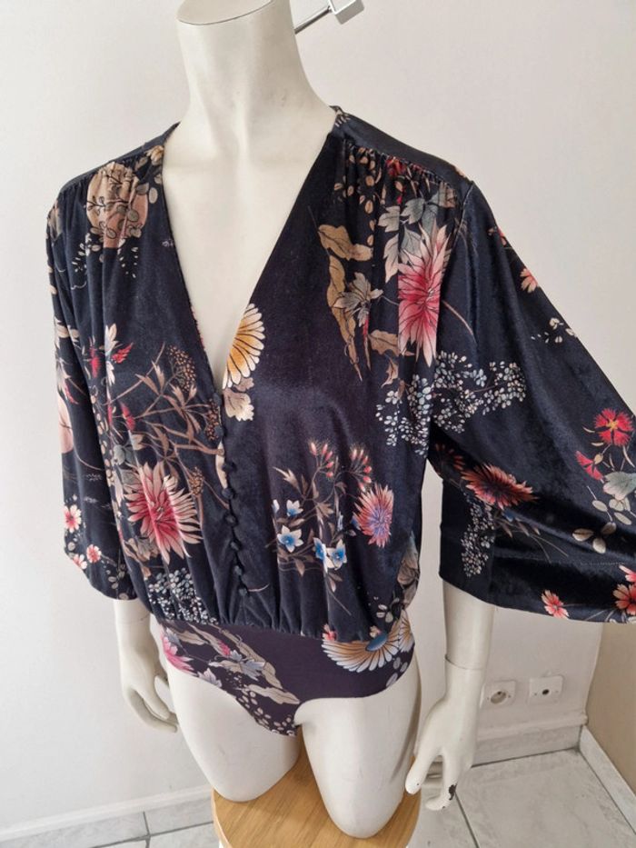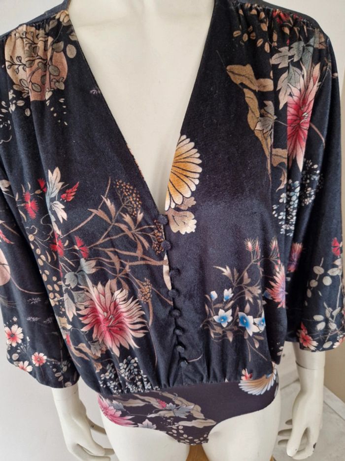 Superbe body avec une belle matière très douce. Motifs floral. Manches large trois quarts . Décolleté en V avec des petits boutons recouvert. Fermeture par des boutons pressions métalliques. Bouton de rechange cousu sur l'étiquette. #ellaben_lingeries #ellaben_articleszara