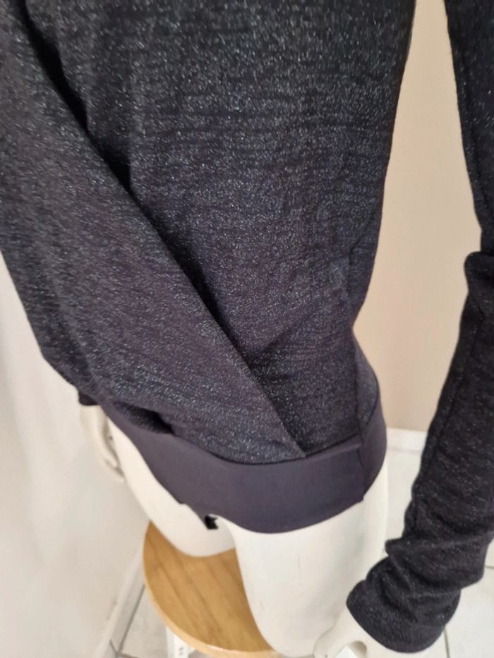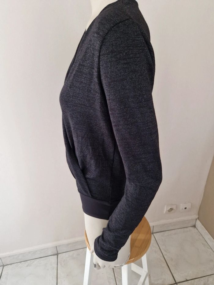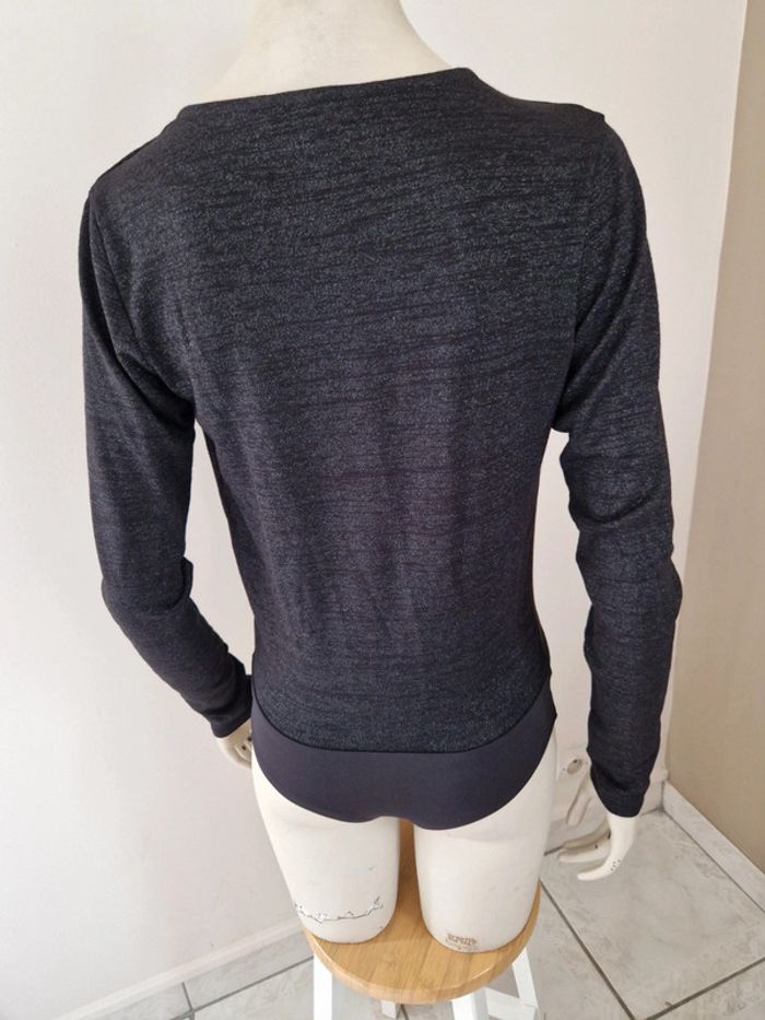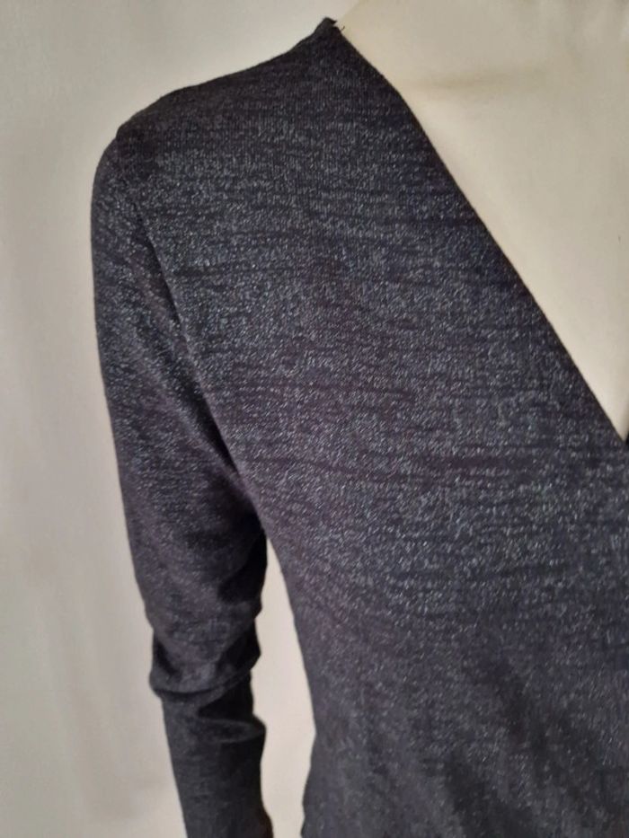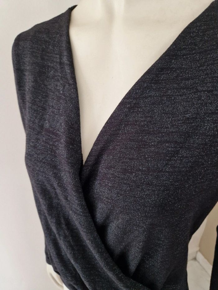 Joli body manches longues avec un décolleté croisé plongeant. Fermeture par deux boutons pressions en matière plastique . Tissus avec des fils métallique argentés viscose et élasthanne. #ellaben_lingeries