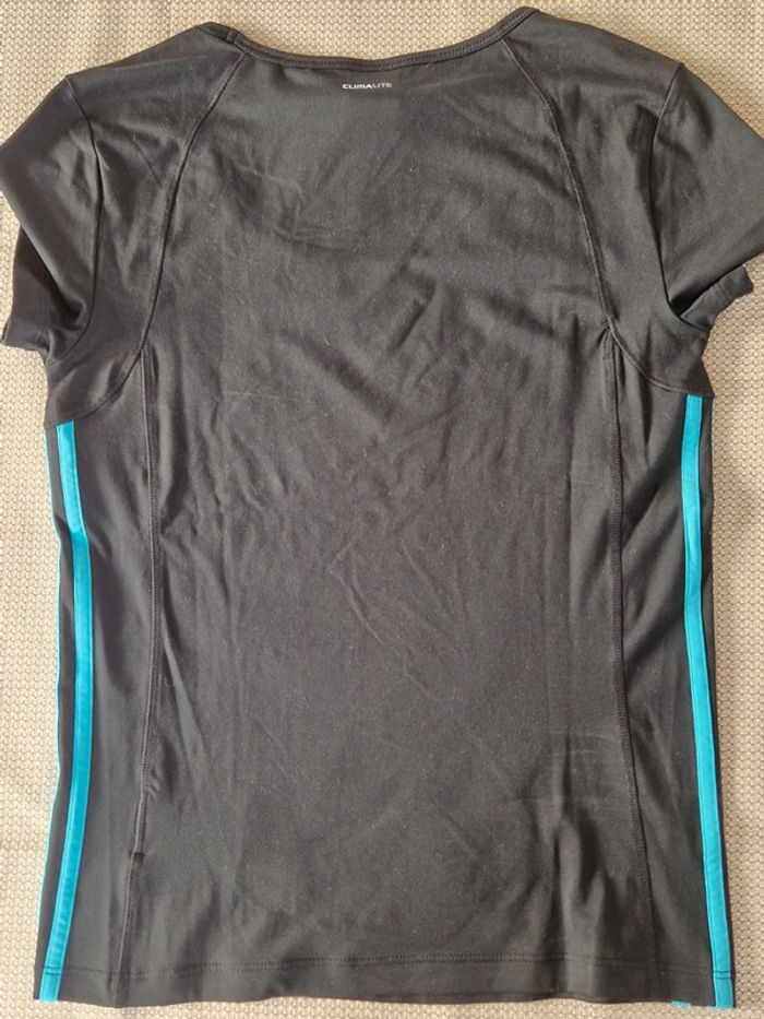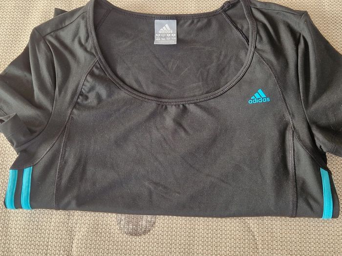 T-chirt Adidas climalite noir avec des bandes sur les côtés . Manches courtes,décolleté en V. Impeccable pour la pratique du sport. #ellaben_tchirtfemme #ellaben_sport