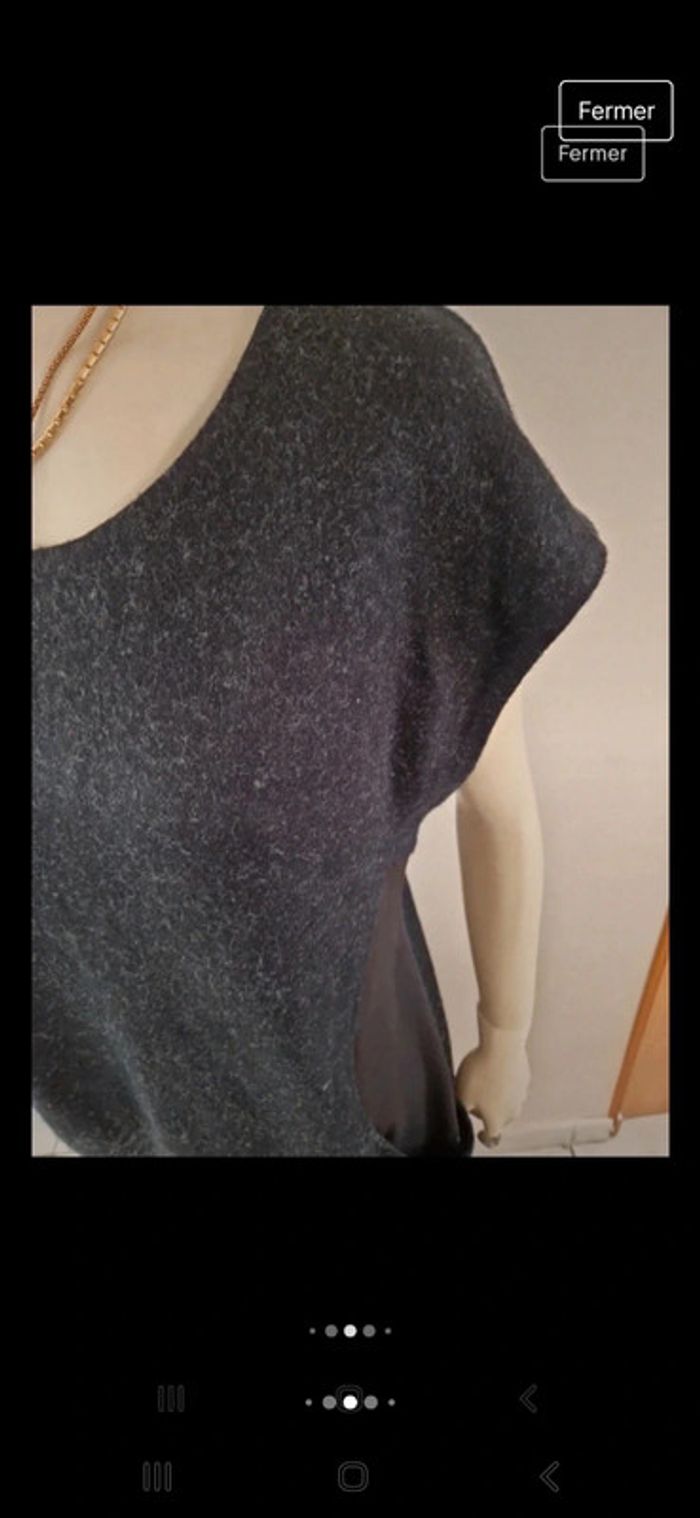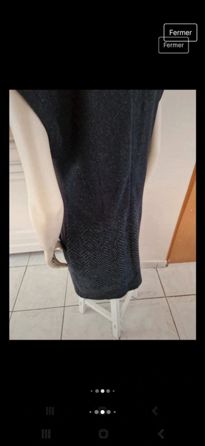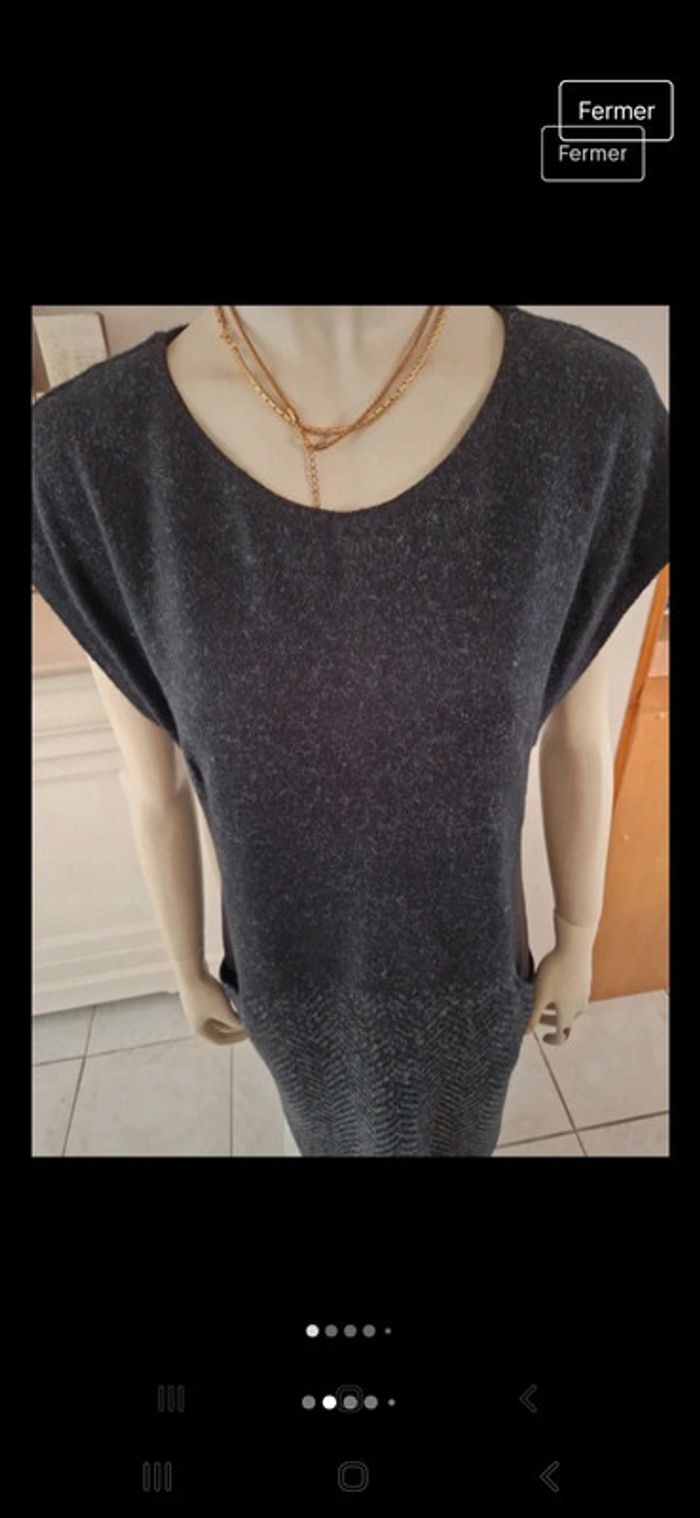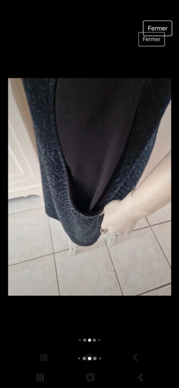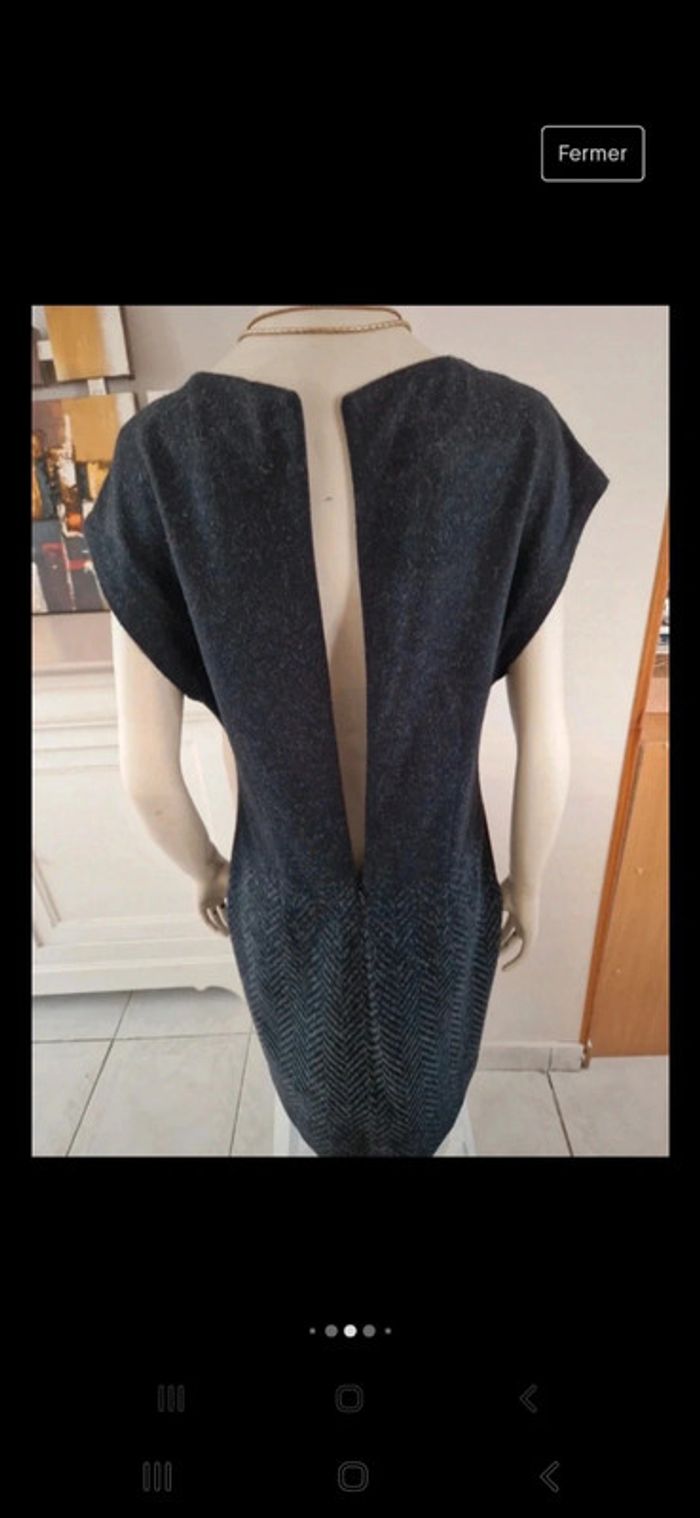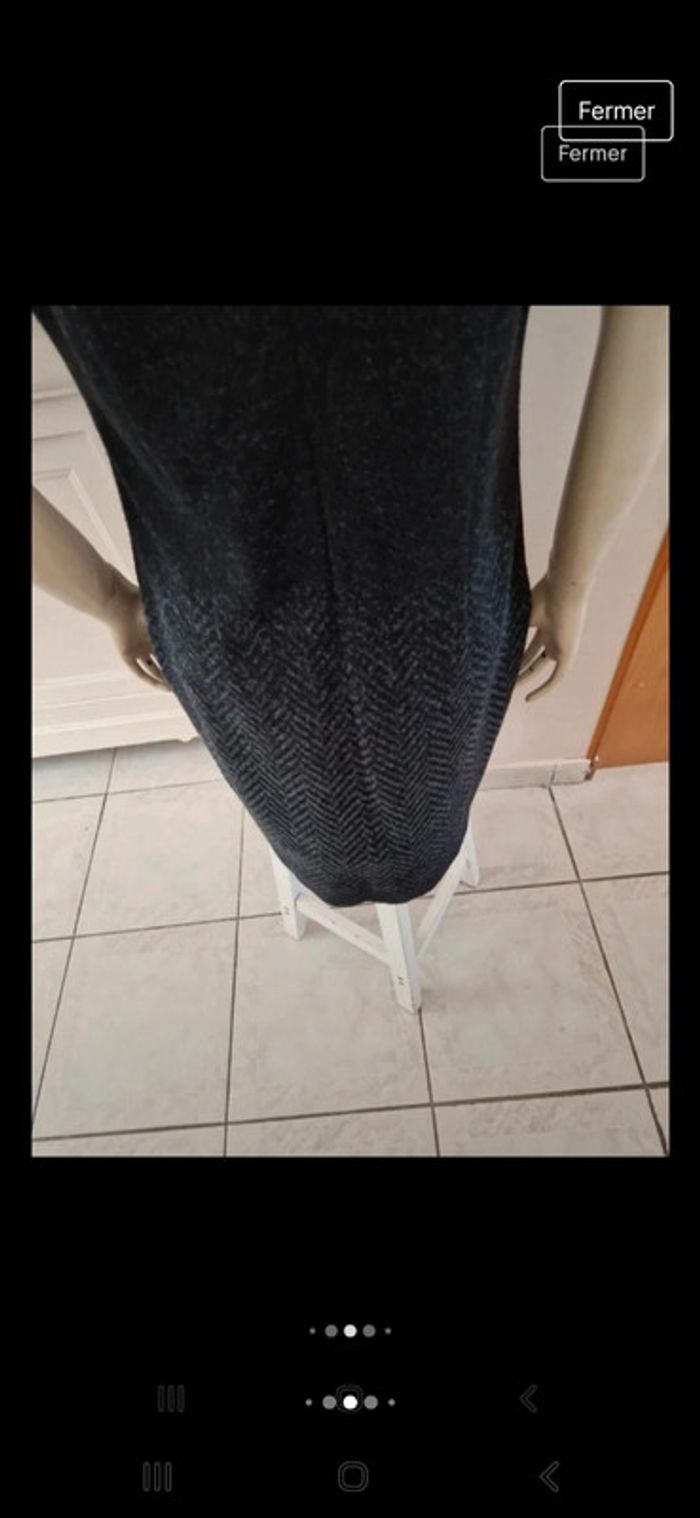 Jolie robe sans manches double matière, Encolure ronde. Deux poches à la taille. Le haut est a motifs unie noir moucheté et le bas motifs chevrons dans les mêmes tons. Confortable et agréable à porté .Tissu hiver. Taille 4 pour cette marque. #ellaben_robes #ellaben_robesnoire #ellaben_grandestailles Le tableau en fond d'écran est également en vente.