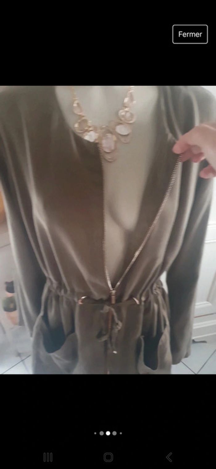 Joli trench de couleur kaki avec deux grandes poches et un lacet intérieur pour cintré la taille. Fermeture éclair couleurs or du haut en bas. Tissus touché peaux de pêches très doux. 100% liocell /Tencel #ellaben_manteau #ellaben_vestesfemme #ellaben_articleszara