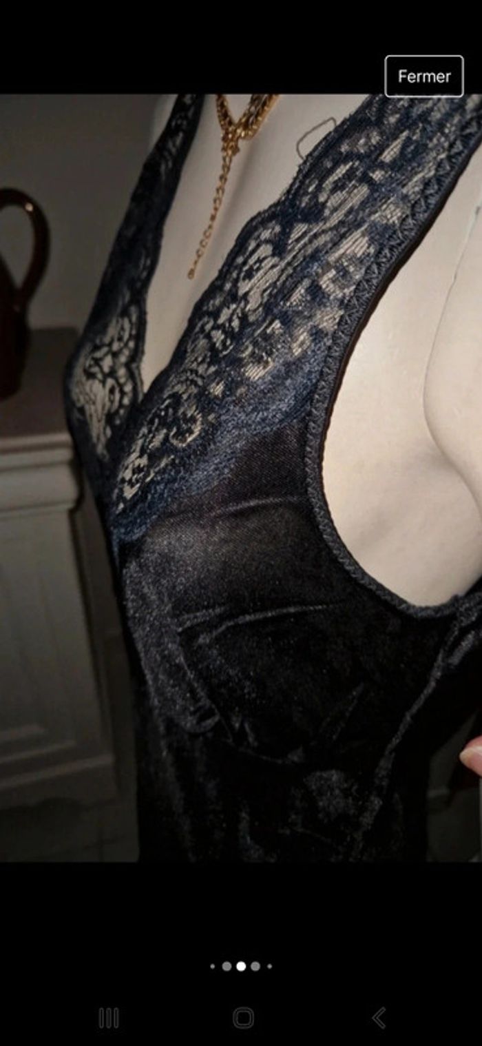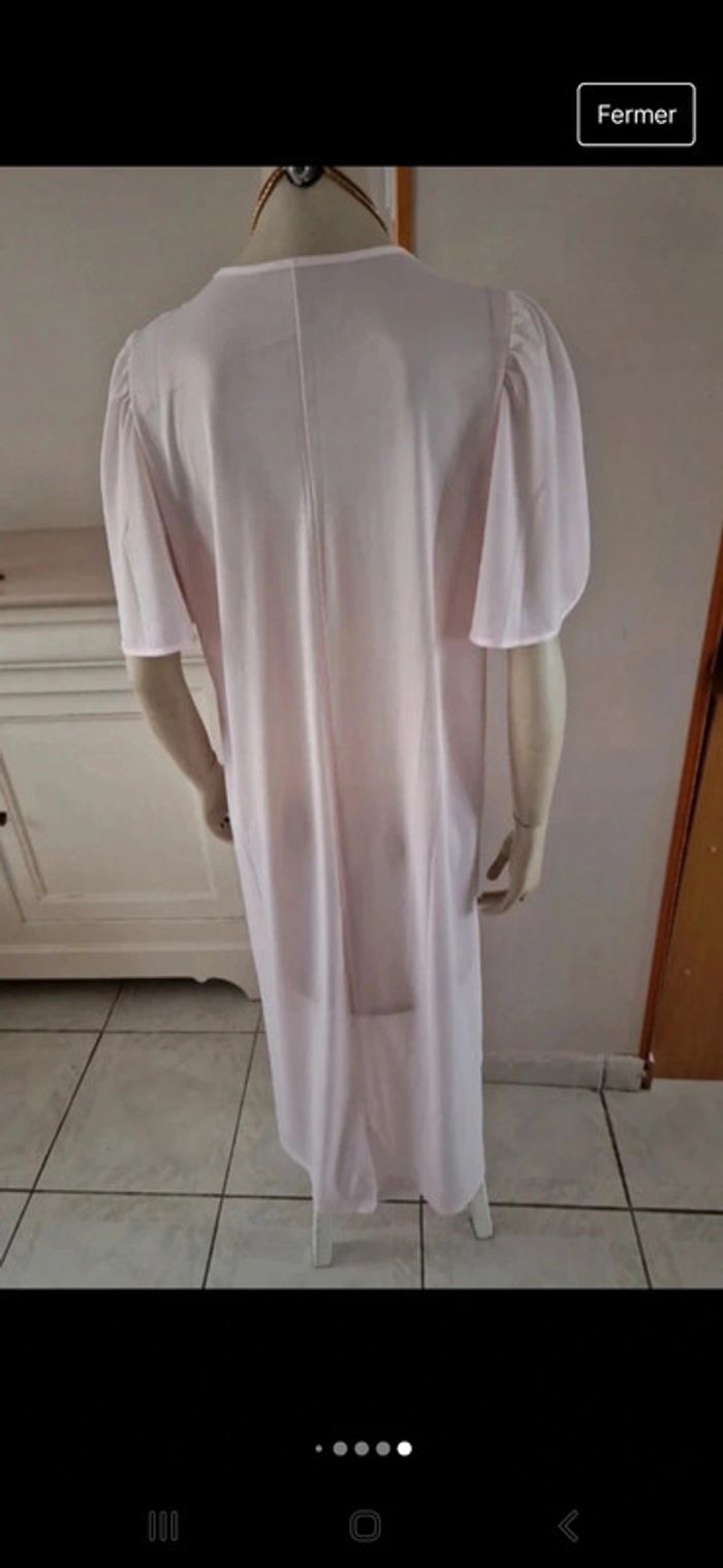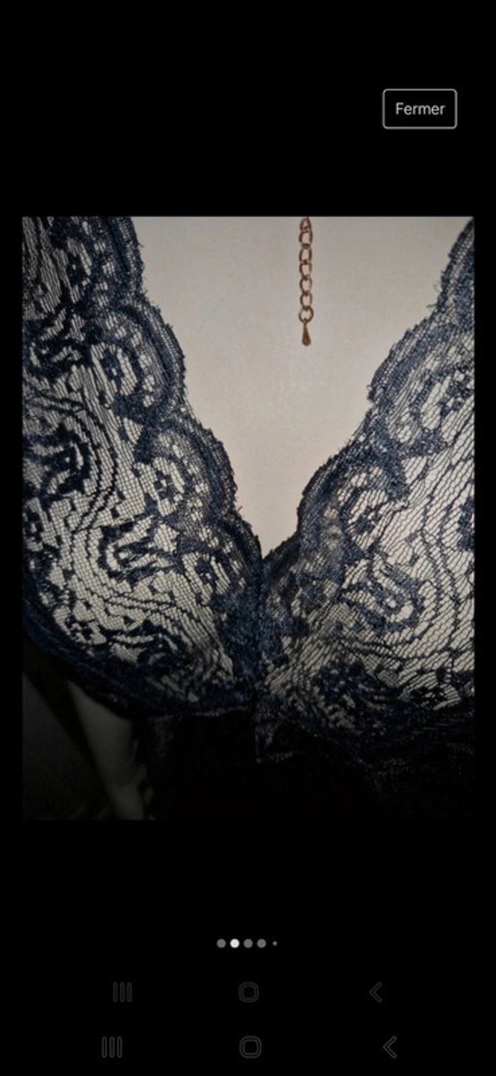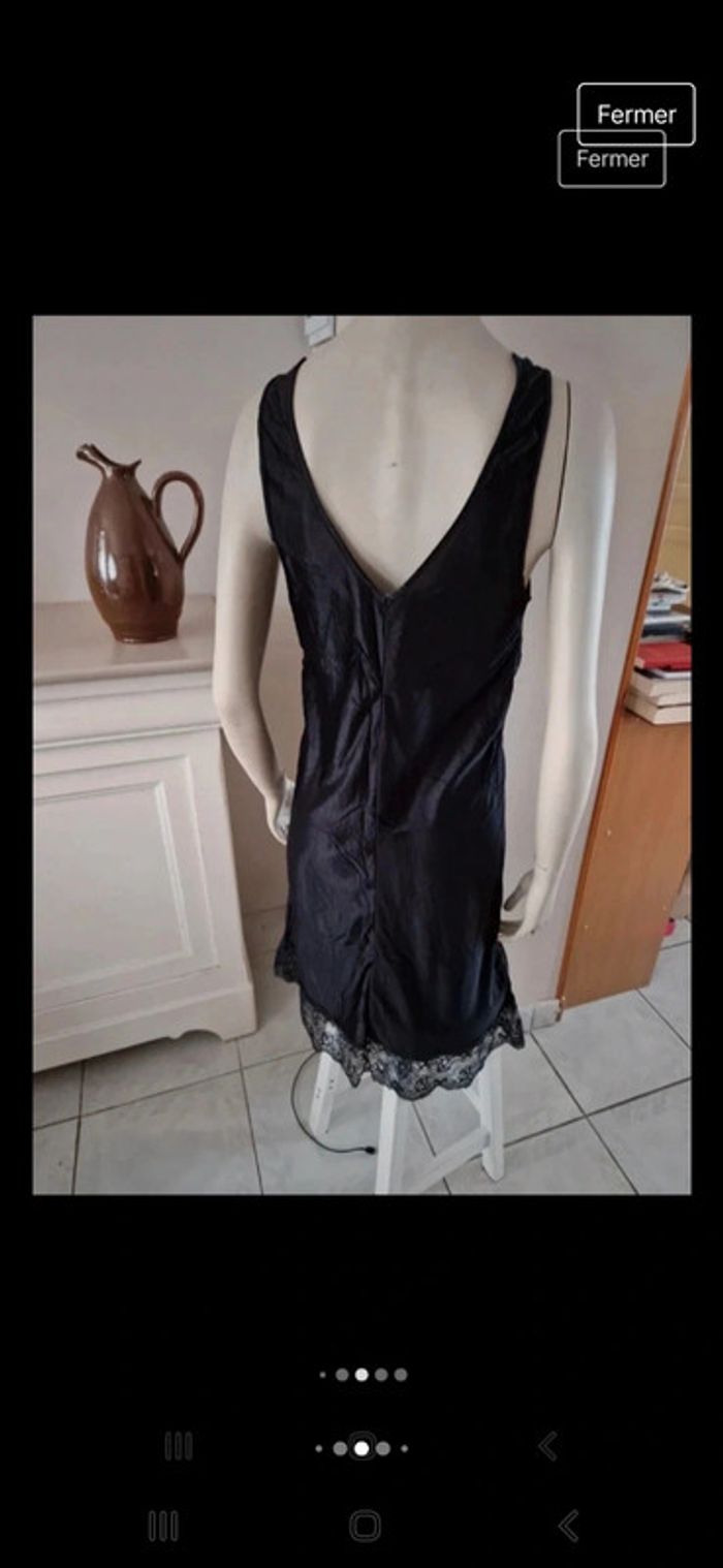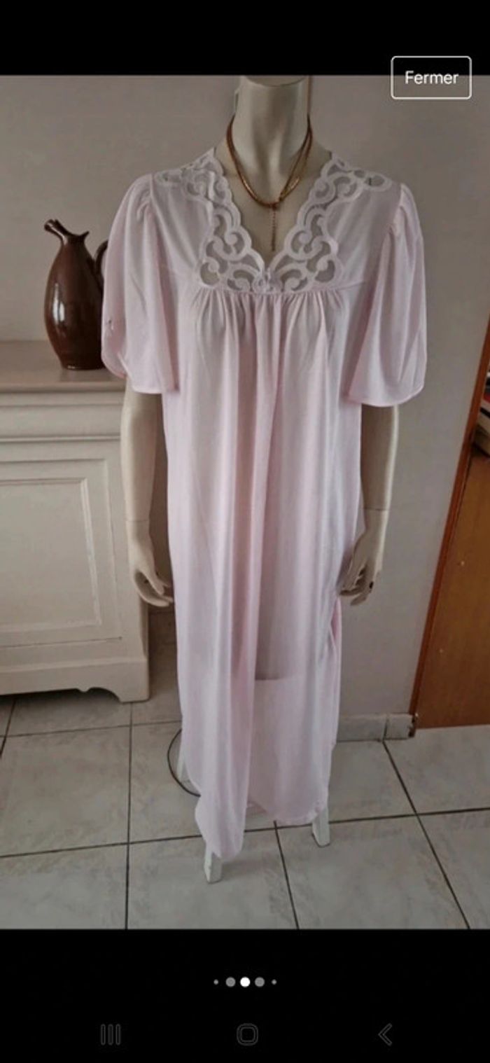 Deux chemises de nuit satiné. L'une rose à manches bouffantes et dentelle. La seconde noir décolleté en V devant et derrière tout en dentelles. Sur le bas de la nuisette un volant en dentelle vient ajouter un petit côté romantique La rose est en très bon état et la noire neuve. Taille 38/40 #ellaben_pyjama