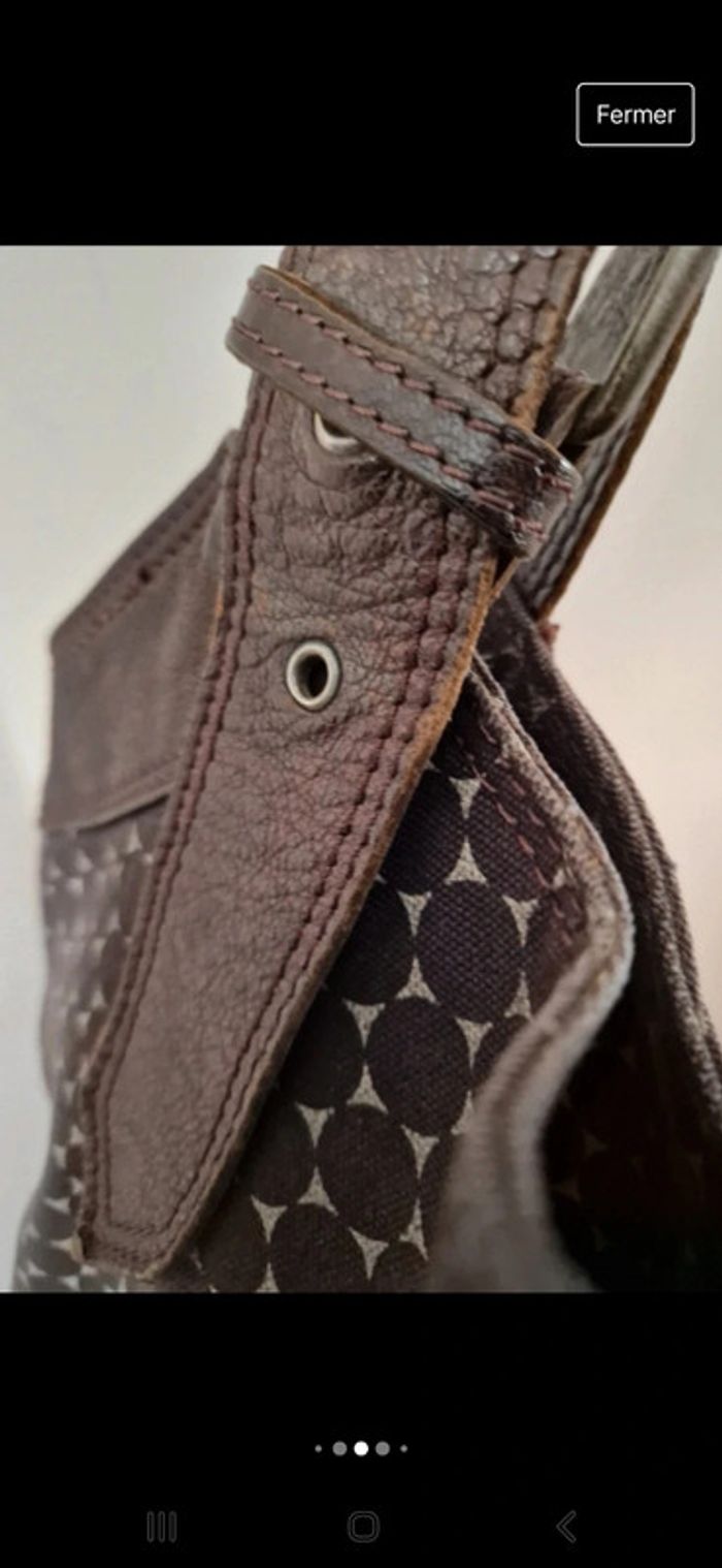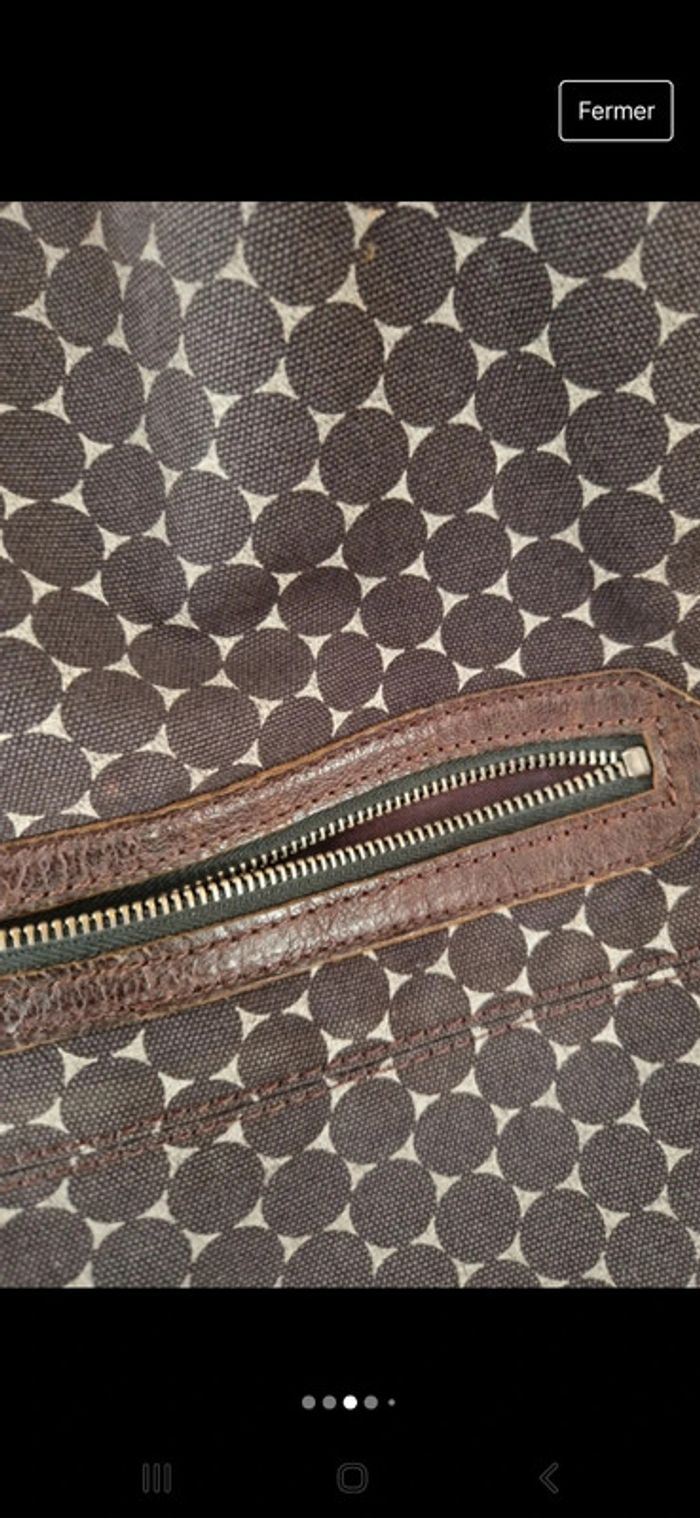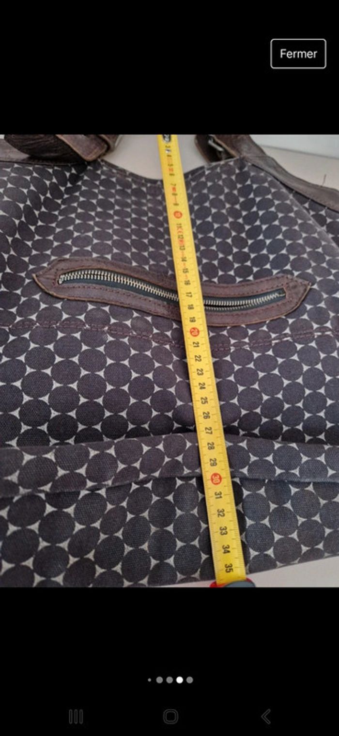 Superbe grand sac en coton avec deux grandes bandoulières en cuir. Bandoulières qui se règlent facilement. Poche à l'intérieur qui se ferme par une fermeture éclair. Pochette extérieure avec une fermeture éclair cassé sinon le sac est impeccable. Le prix tient compte de ce défaut. 100% coton et cuir. Dimensions sur les dernières photos. #ellaben_sacs