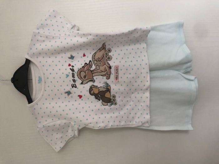 Joli pyjama fille, 2 pièces, composé d'un tee-shirt manches courtes et d'un short élastiqué à la taille. Motif Bambi et Panpan Marque Disney Taille 24-36 mois, 98 cm