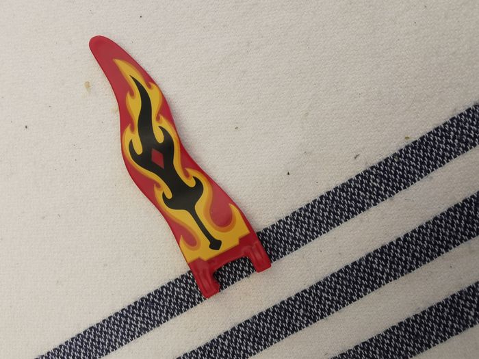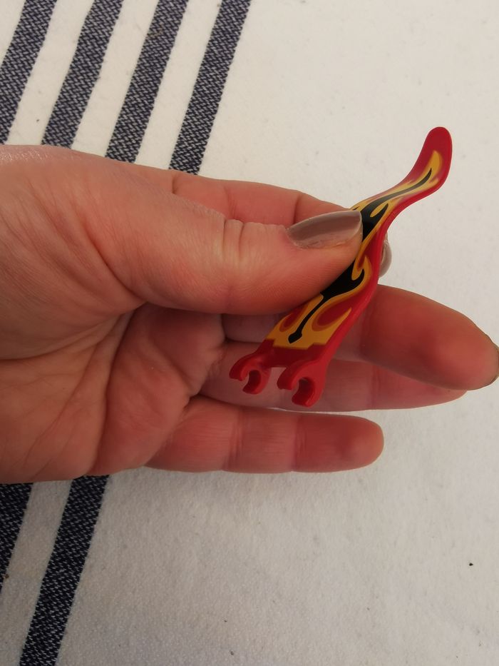 Drapeau flamme Playmobil pièce détachée, en plastique, en très bon état, taille 8x2 cm, poids 3g.