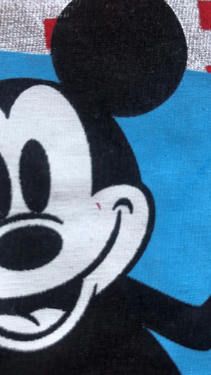 Une petite trace rouge sur la joue de Mickey (3ème photo) Mis à part ce détail, qui ne se voit presque pas, le t-shirt est en parfait état #griotte3garçon4ans