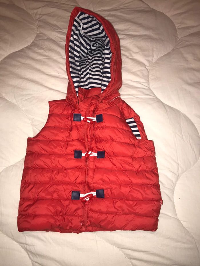 doudoune rouge sans manches Obaidi, réversible Capuche amovible En excellent état Taille 18mois #griotte3garçon18mois