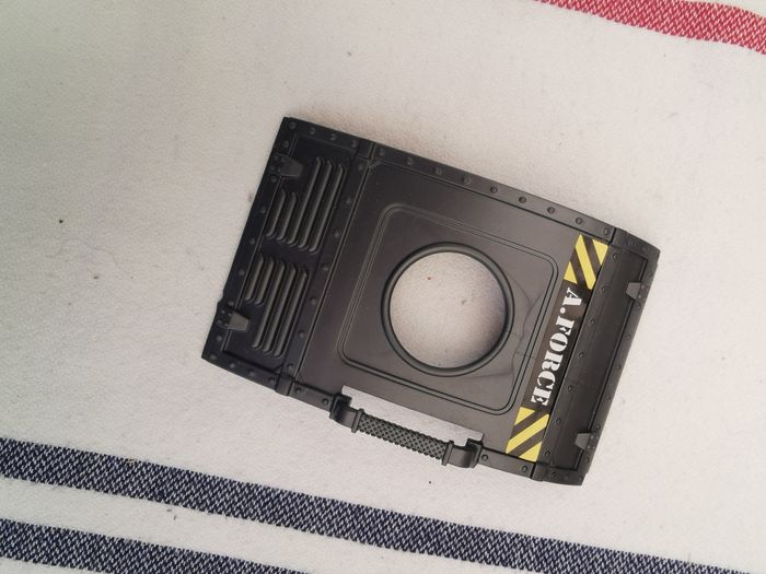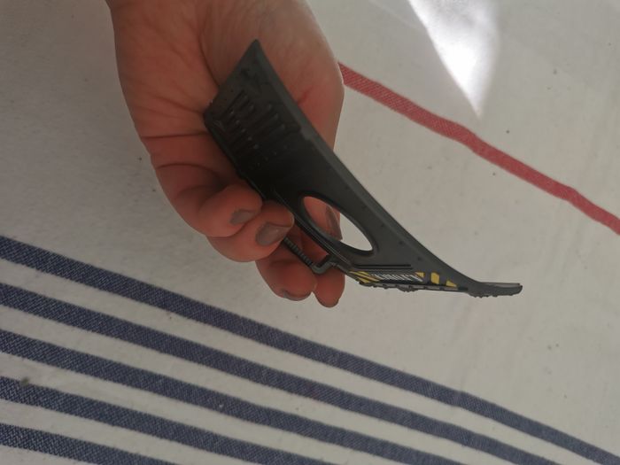 Porte d'hélicoptère A.Force, en plastique, en très bon état, une petite marque sur le dessous, je ne sais pas si c'est du Playmobil, n'est pas marqué. Taille 10,5x6,5 cm, poids 14g.