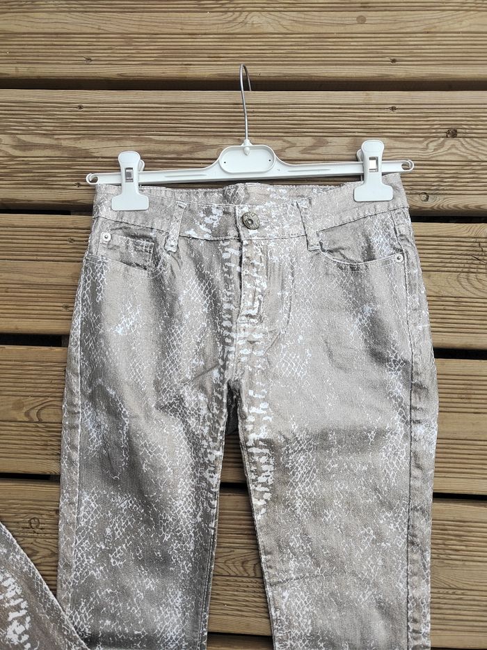 Pour un look rock, chic ou urbain, ce jean effet simili cuir reptile est la pièce idéale. Coupe ajustée et matière brillante donnent du caractère à toutes tes tenues. À porter avec des baskets ou des talons selon ton style !