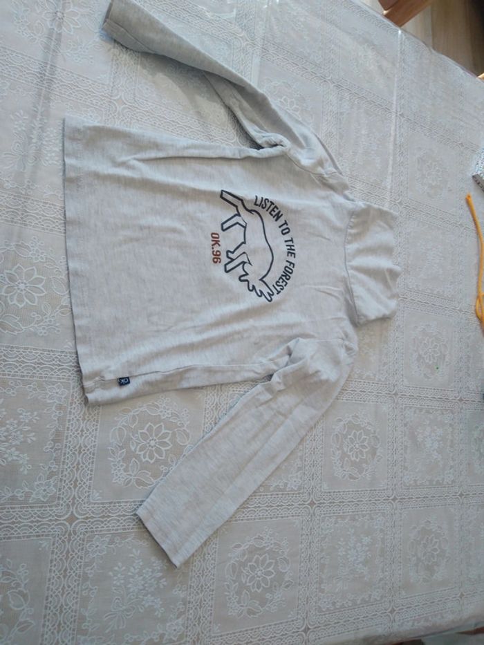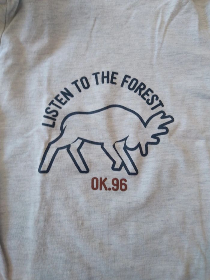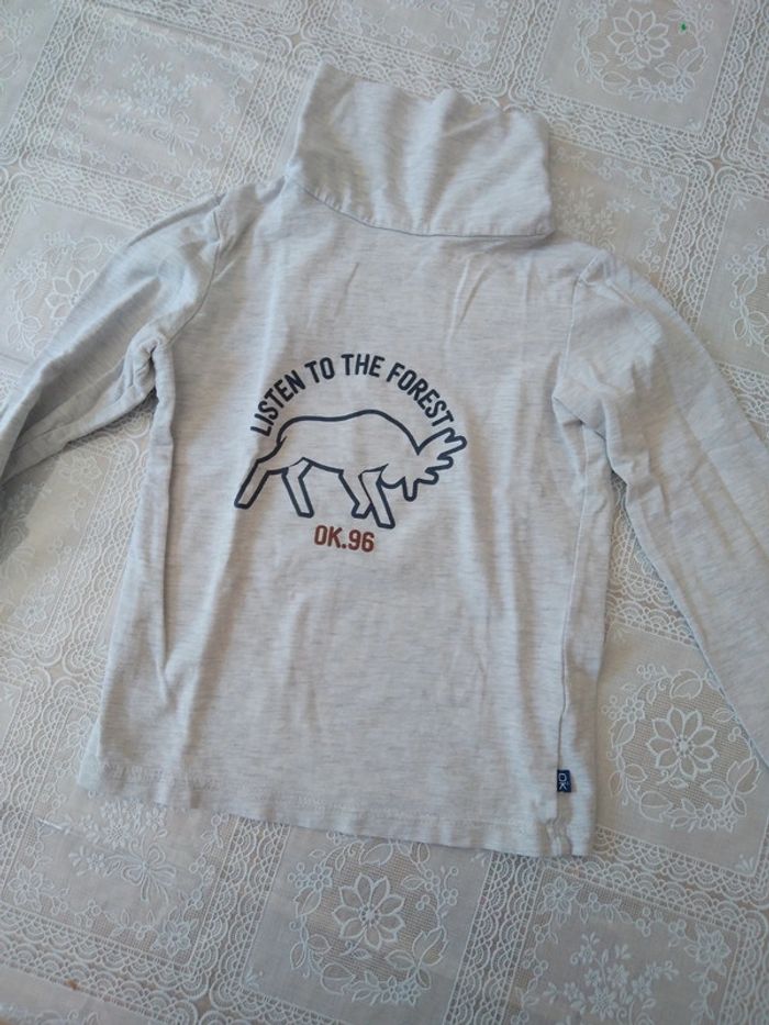 Tee-shirt à col roulé, sous-pull gris clair. Motif renne, message "Listen to the forest" Coton majoritaire Taille 4 ans #marine4932garçon4ans Réductions activées !