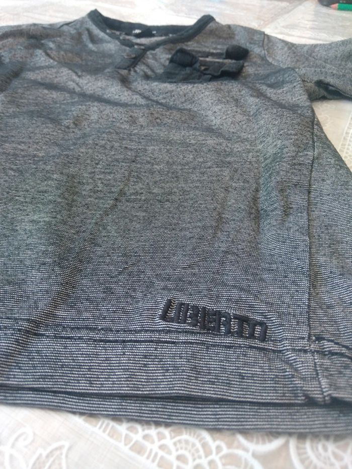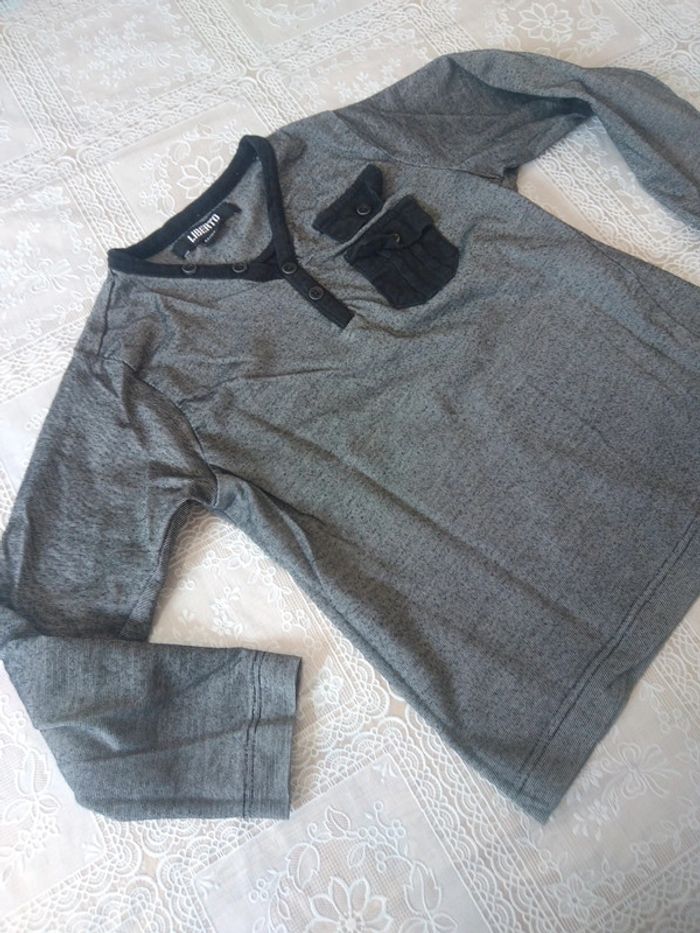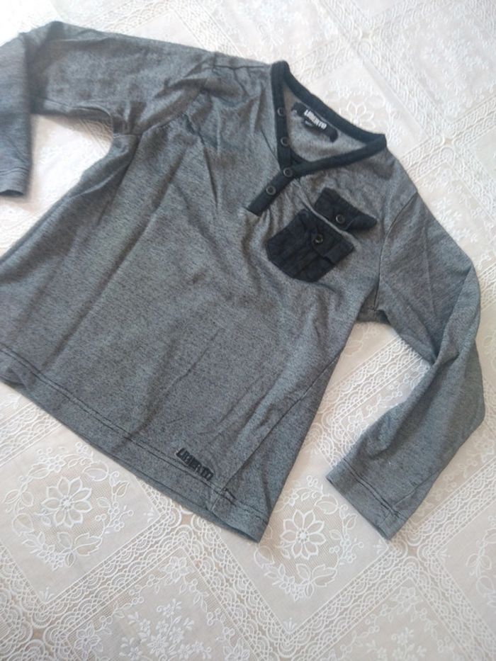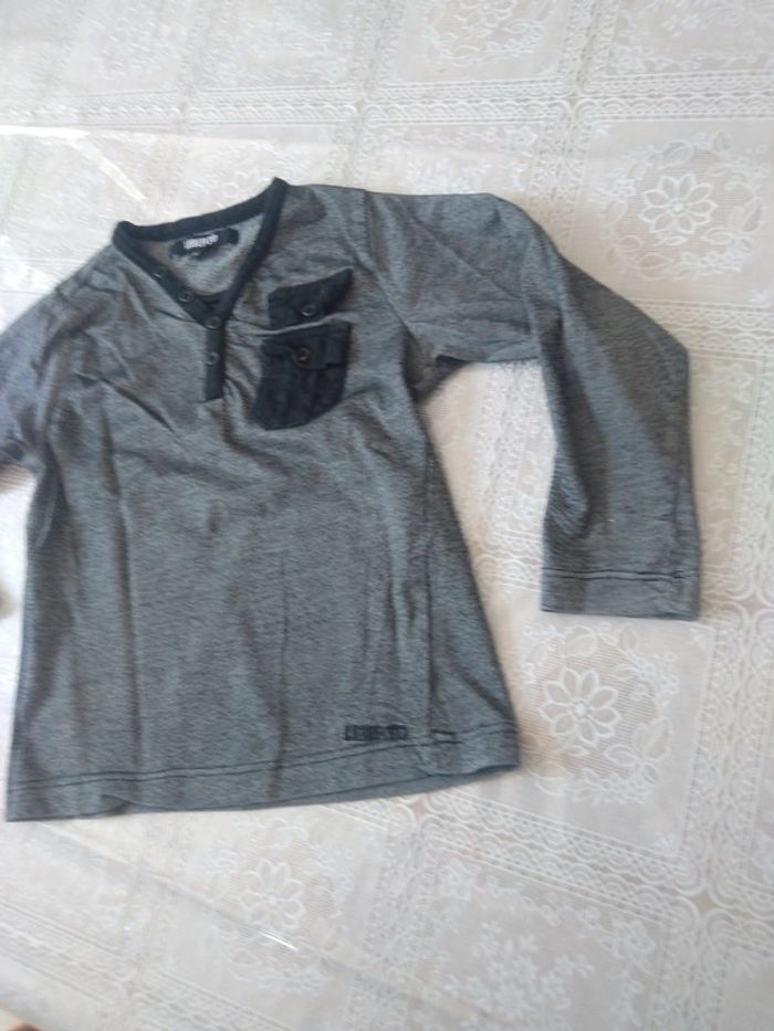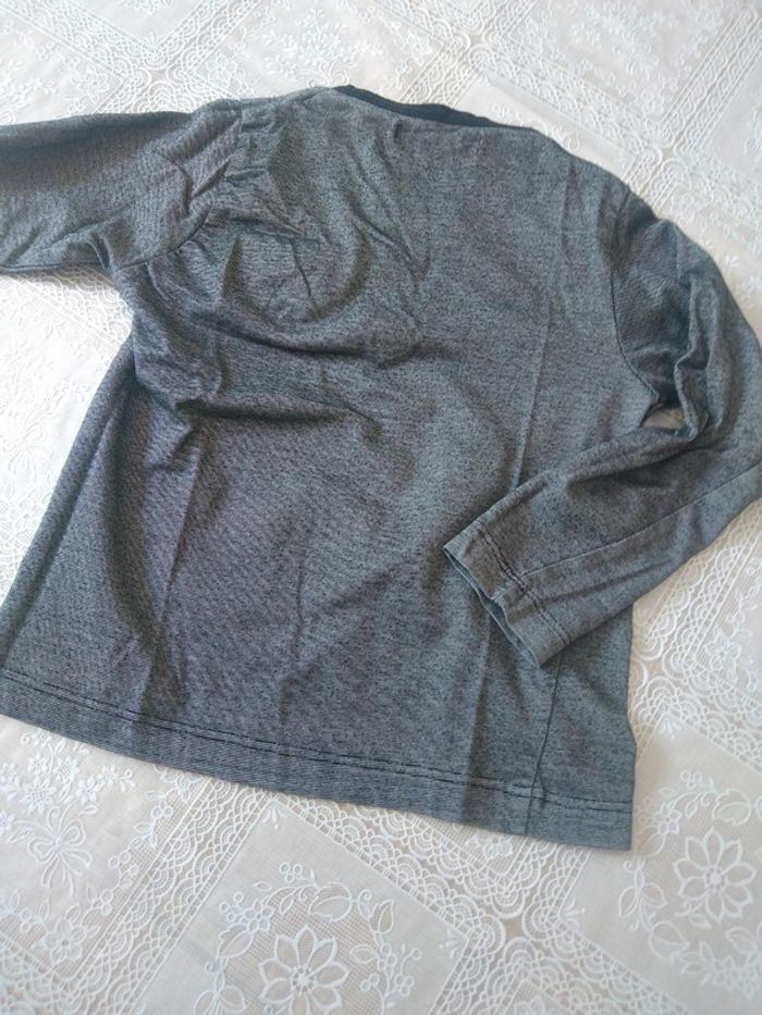 Tee-shirt gris-noir à manches longues. Étiquette de composition coupée. Taille 4 ans #marine4932garçon4ans