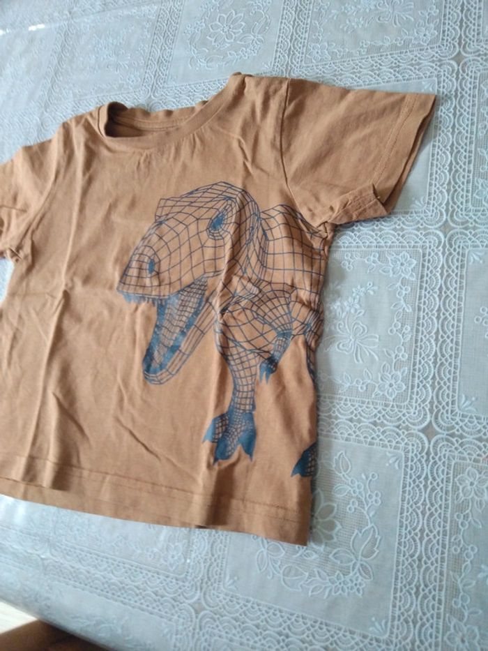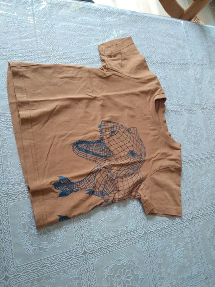 Tee-shirt marron à manches courtes. Motif dinosaure 🦕 Peu porté Taille 4 ans #marine4932garçon4ans Réductions activées !