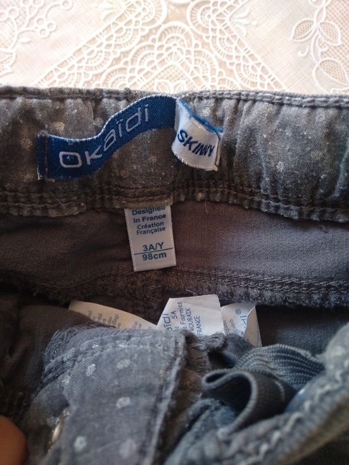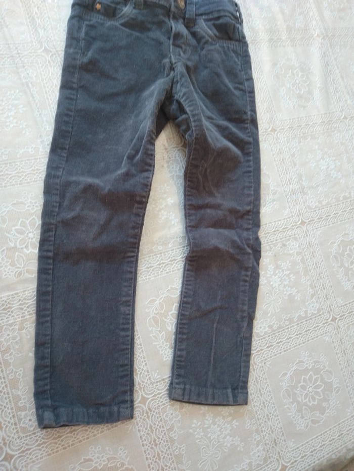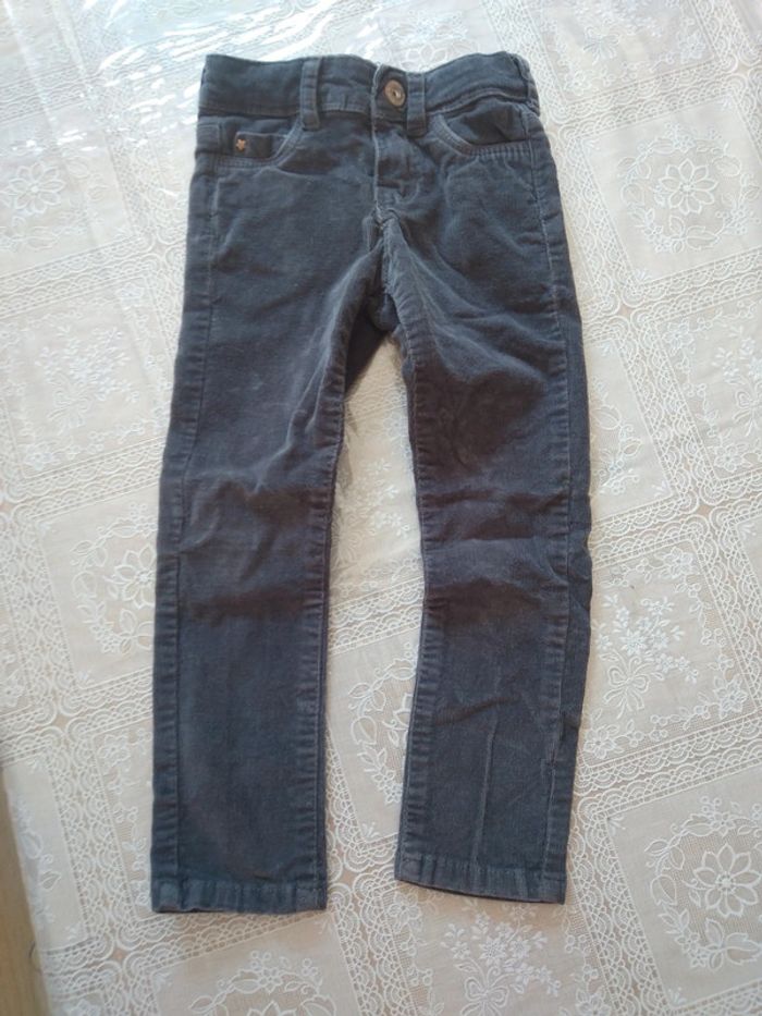 Pantalon en velours gris. Coupe skinny. Coton majoritaire Taille ajustable par élastiques Taille 3 ans #marine4932fille2ans
