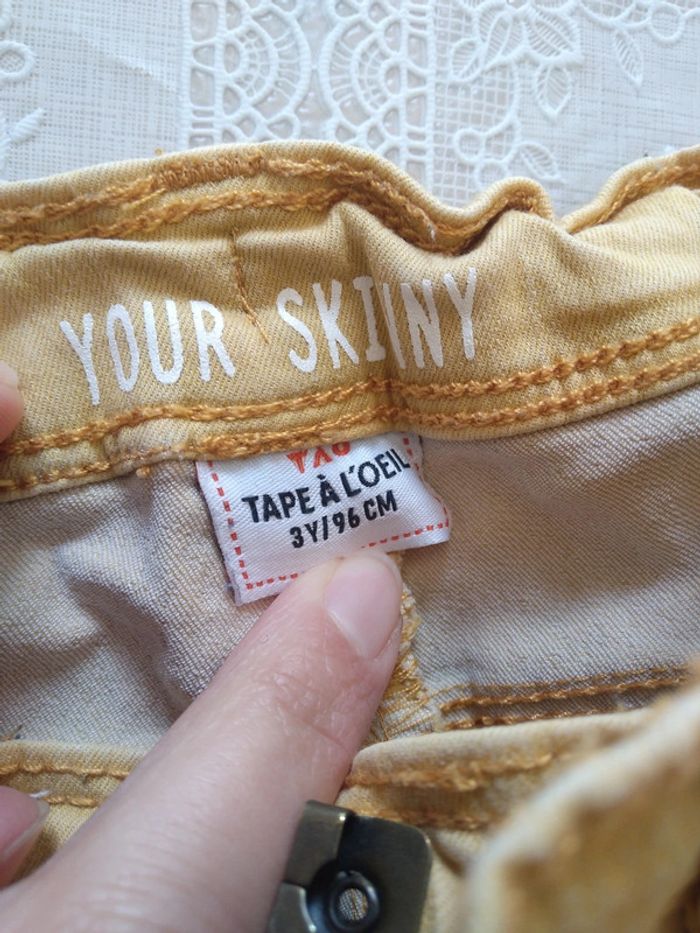 Pantalon en jean jaune. Coupe skinny Taille ajustable par élastiques Étiquette de composition coupée Peu porté Taille 3 ans #marine4932fille3ans