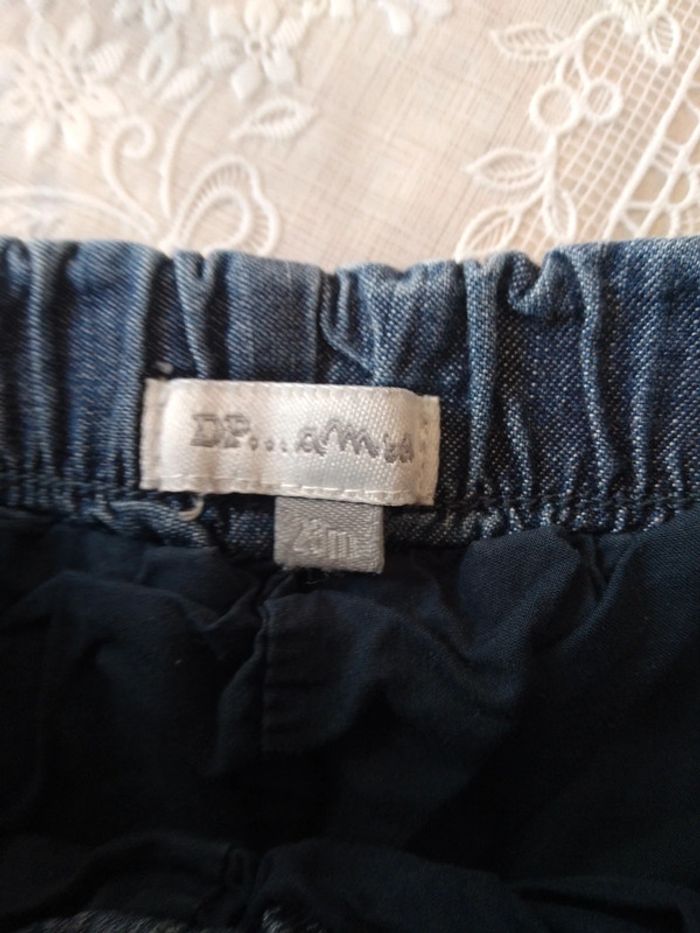 Pantalon bleu jean. Doublure coton Taille élastique et resserré aux chevilles. Coton Taille 23 mois #marine4932fille2ans