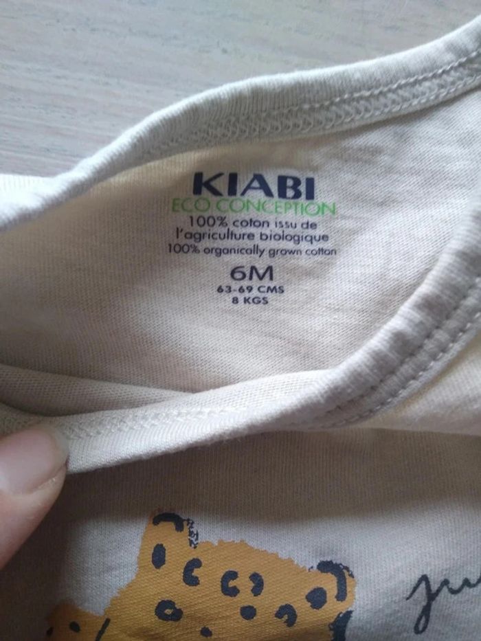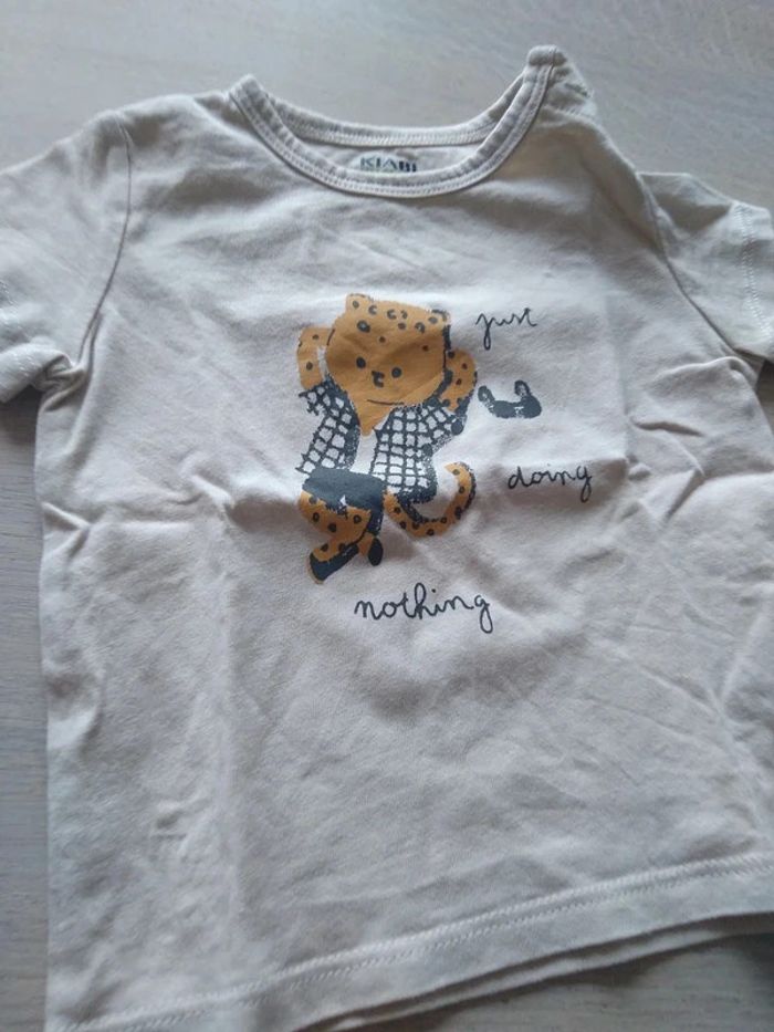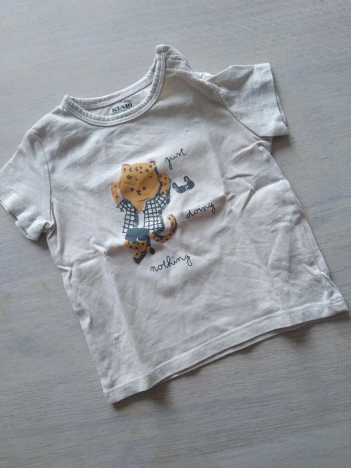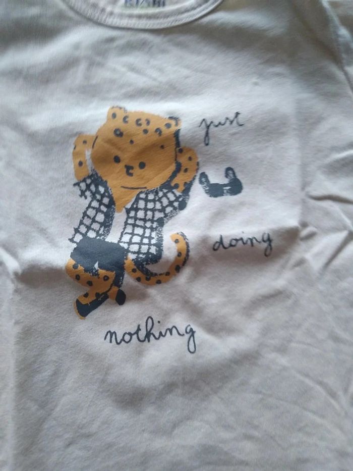 Tee-shirt beige à manches courtes. Motif petit tigre, léopard. Message "Just doing nothing" Coton Neuf, jamais porté Taille 6 mois #marine4932garçon6mois Réductions activées !