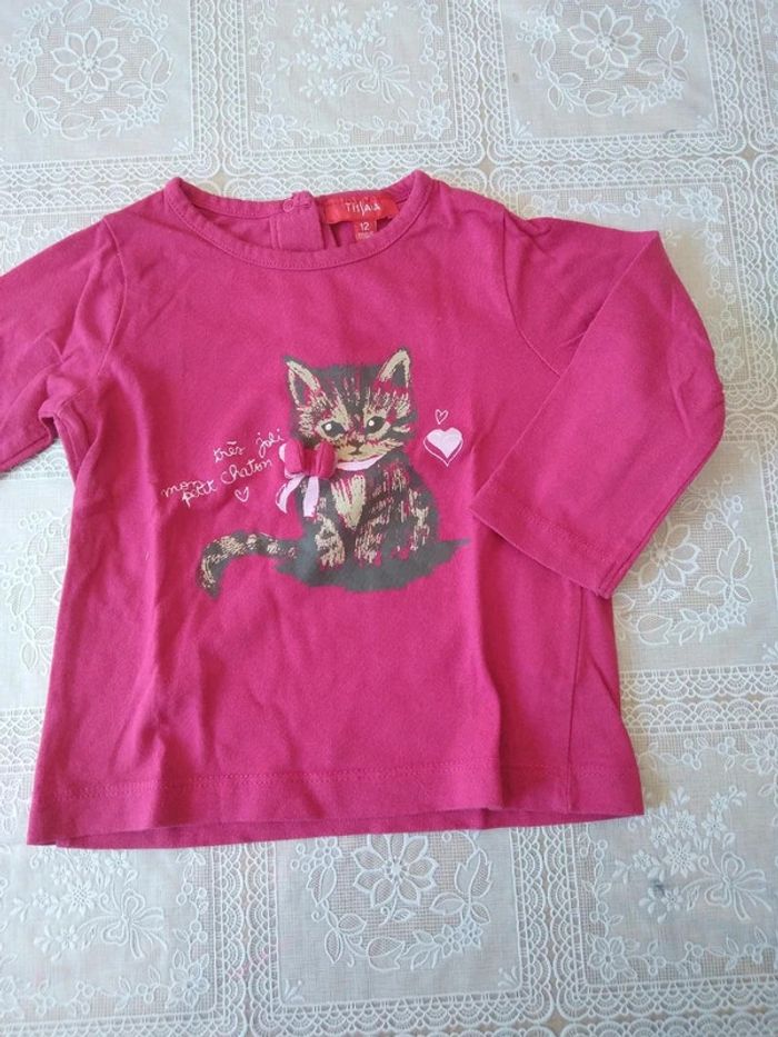 Tee-shirt rose chaton 12 mois - photo numéro 1