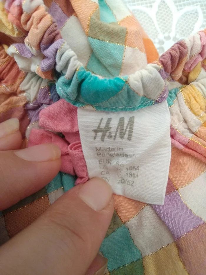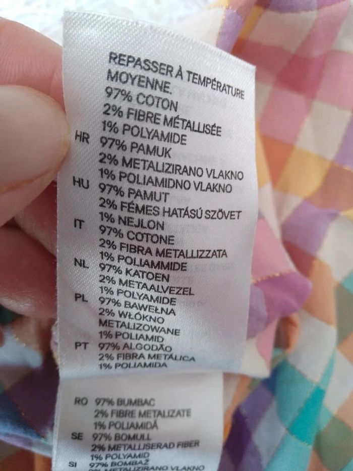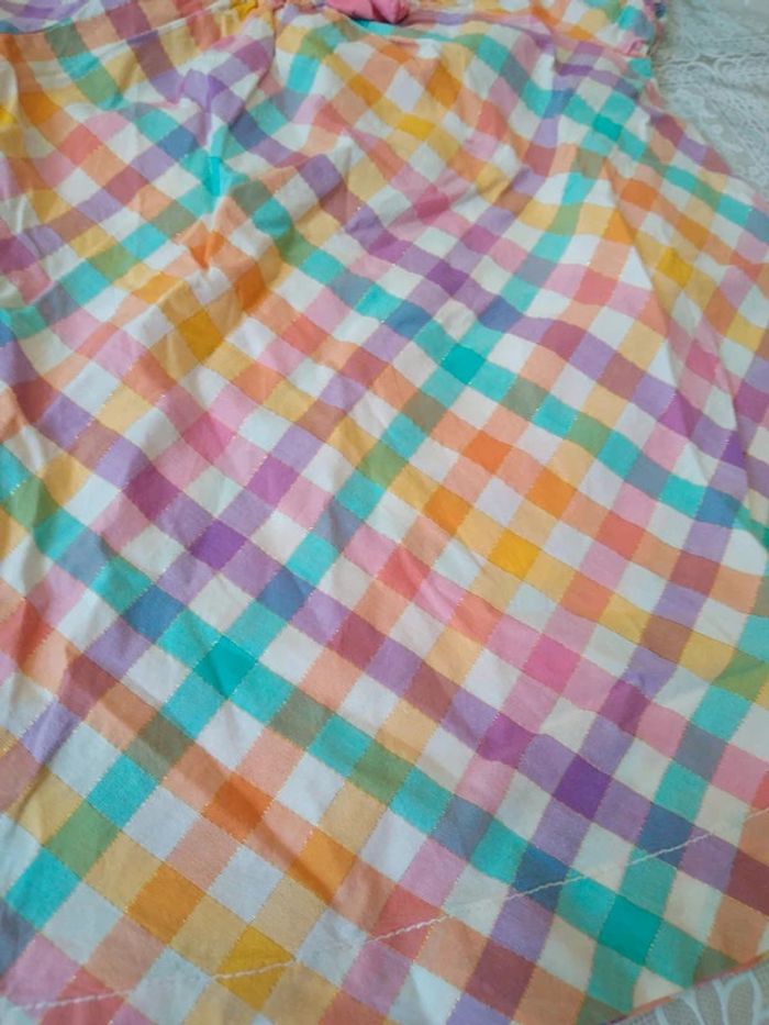 Robe tunique à carreaux multicolores avec fibres métallisés. Manches courtes Coton majoritaire Taille 12 mois #marine4932fille12mois Réductions activées. Profitez-en !