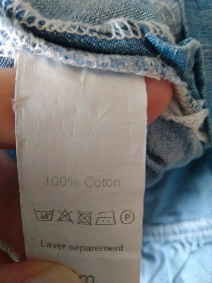 Robe salopette en jean bleu clair. Coton Taille 9 mois #marine4932fille9mois Réductions activées !