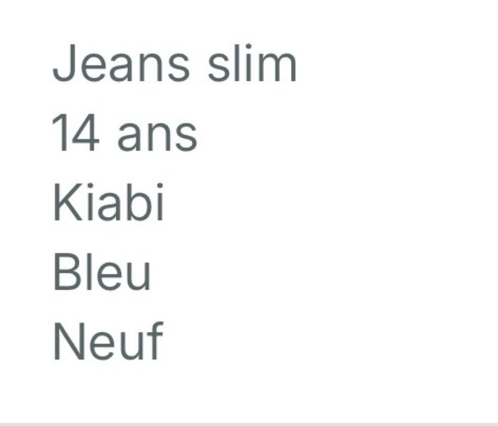 Jeans Kiabi Bleu 14 ans Neuf jamais porté