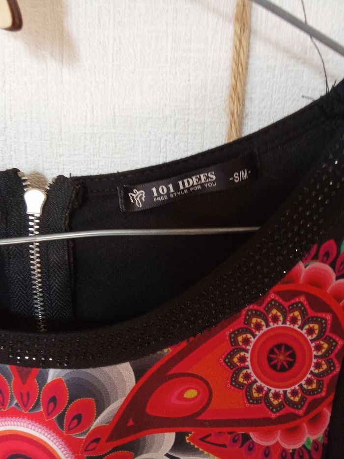 Robe mi saison été taille S/M motif fleur, rouge, noire - photo numéro 7