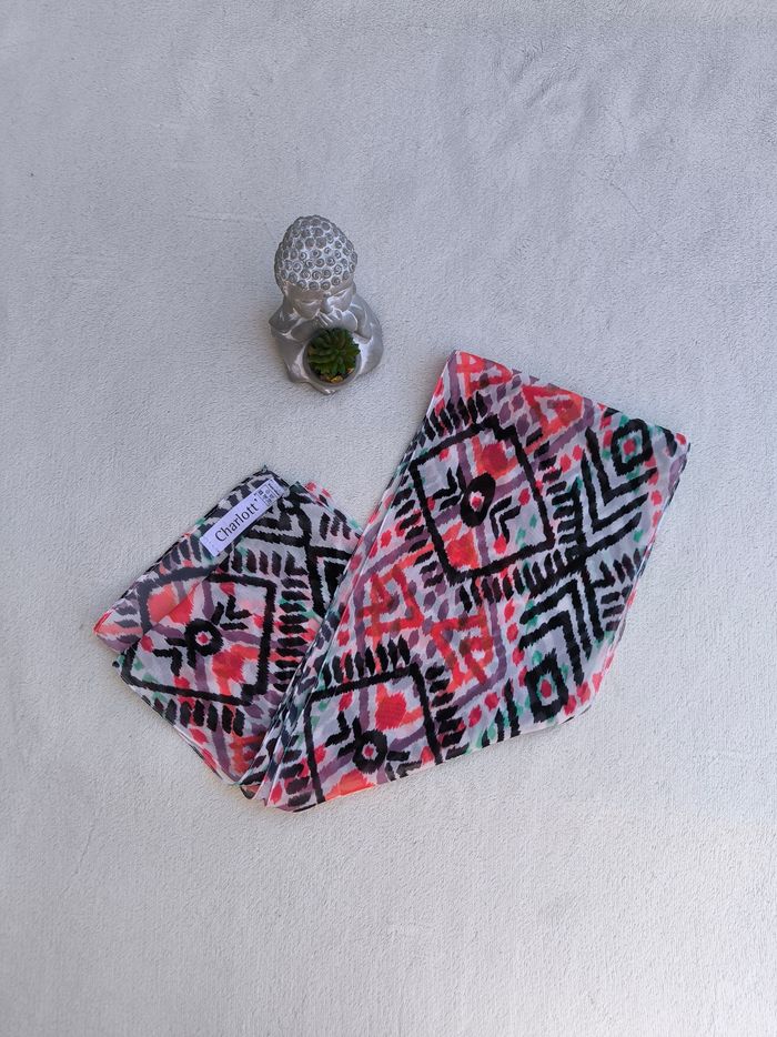 Foulard / Écharpe Marque Charlott' • Coloris blanc, noir, rouge, violet, vert • Imprimés • Tissu fin Longueur totale : 180 cm Largeur : 17 cm En très bon état #evelyneaccessoires
