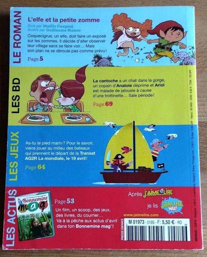 Magazine J'aime Lire n°519 d'avril 2020 pour enfant de 7 à 10 ans Histoire : L'elfe et la petite Zomme Jeux faits en partie Anatole Latuile : La déprime d'Ulysse Ariol : La trottinette BD La cantoche Marque-page à détacher ▶️ Voir tous mes livres pour enfants : #n1n13livreenfant