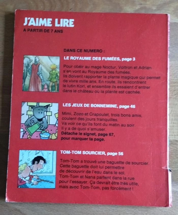 Magazine J'aime Lire n°69 d'octobre 1982 pour enfant à partir de 7 ans Histoire : Le royaume des fumées Les jeux de Bonnemine : quelques jeux à faire A la bonne fourchette : Tom-Tom sourcier Marque-page à détacher Couverture abimée ▶️ Voir tous mes livres pour enfants : #n1n13livreenfant