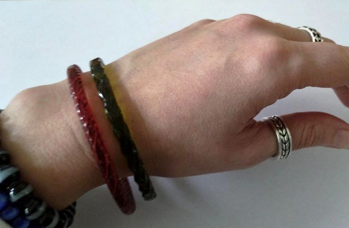 2 bracelets en verre torsadés vert rouge - photo numéro 4