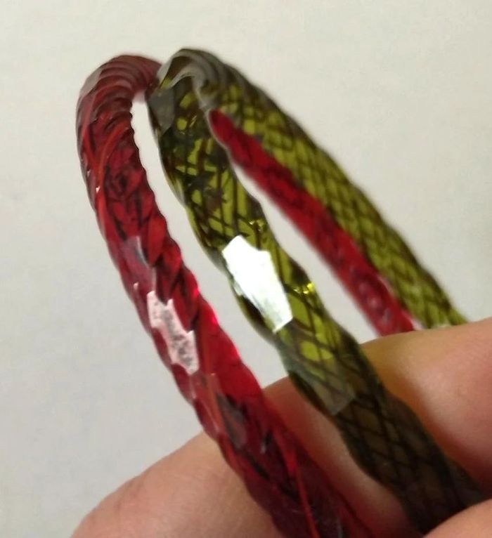 Lot de 2 bracelets en verre un rouge et un vert torsadés et facettés, détails plus fins sur le rouge Jamais portés ▶️ Tous mes bijoux en vente : #n1n13bijoux