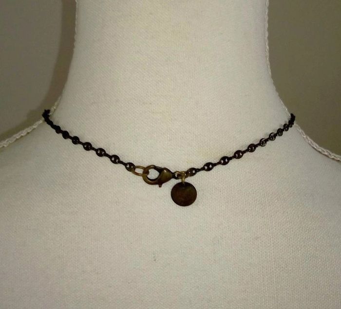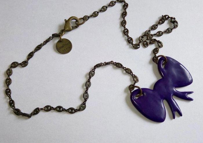Collier fantaisie de marque Lina Poum Bijou avec pendentif en forme de nœud violet monté sur une chaine à maillons fantaisie en laiton noirci effet vintage. ▶️ Voir tous mes bijoux en vente : #n1n13bijoux