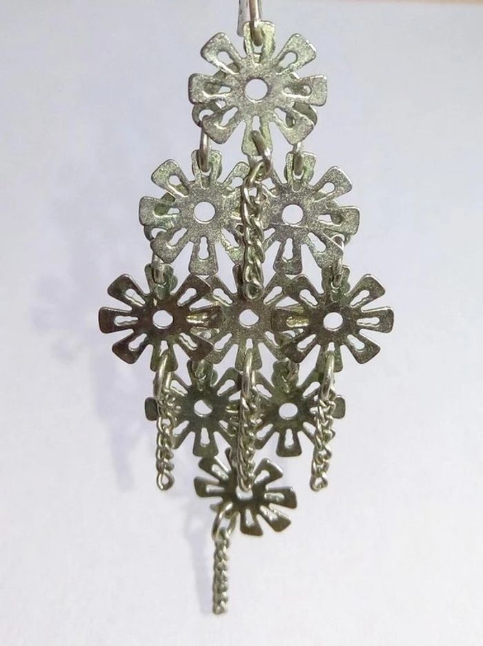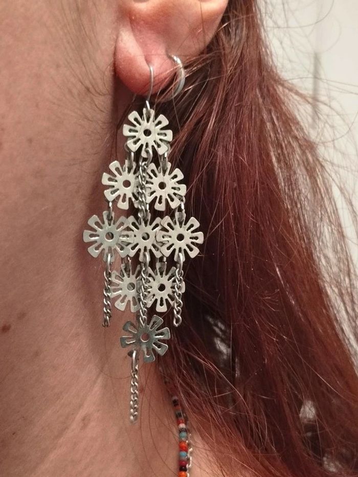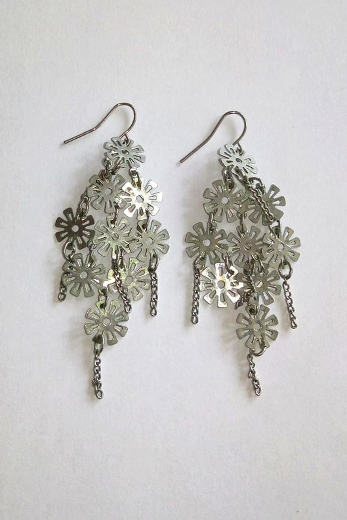 Boucles d'oreilles pendantes argentées cascade de fleurs ajourées avec chainettes Longueur totale : env 7,5 cm ▶️ Voir tous mes bijoux en vente : #n1n13bijoux
