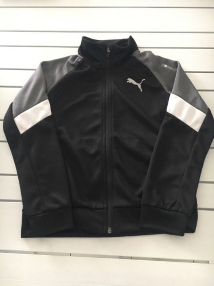 Haut de survêtement PUMA, léger gilet sweat zippé, noir, gris et blanc Taille 9-10 ans État neuf : lavé mais non porté