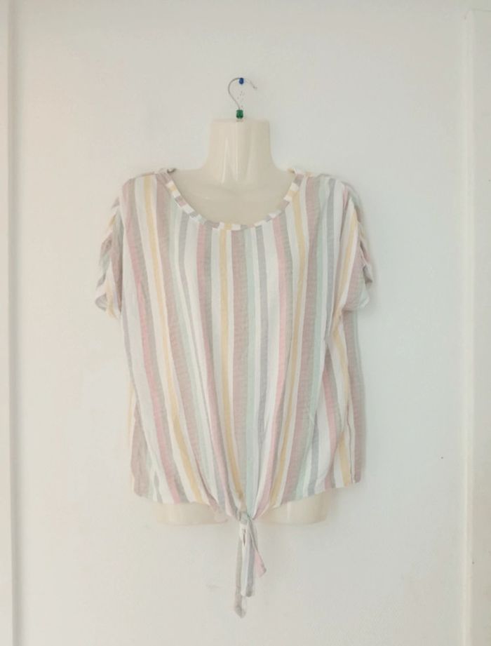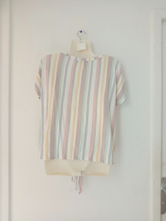 Tee-shirt d'été à rayures et à noué femme - photo numéro 2
